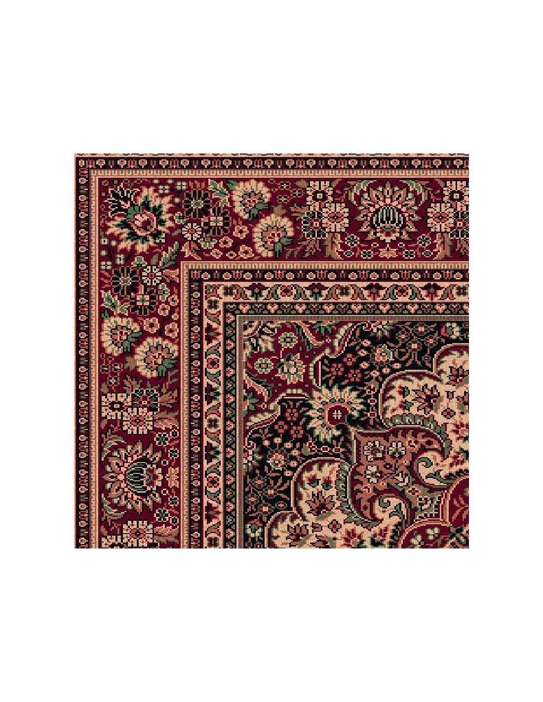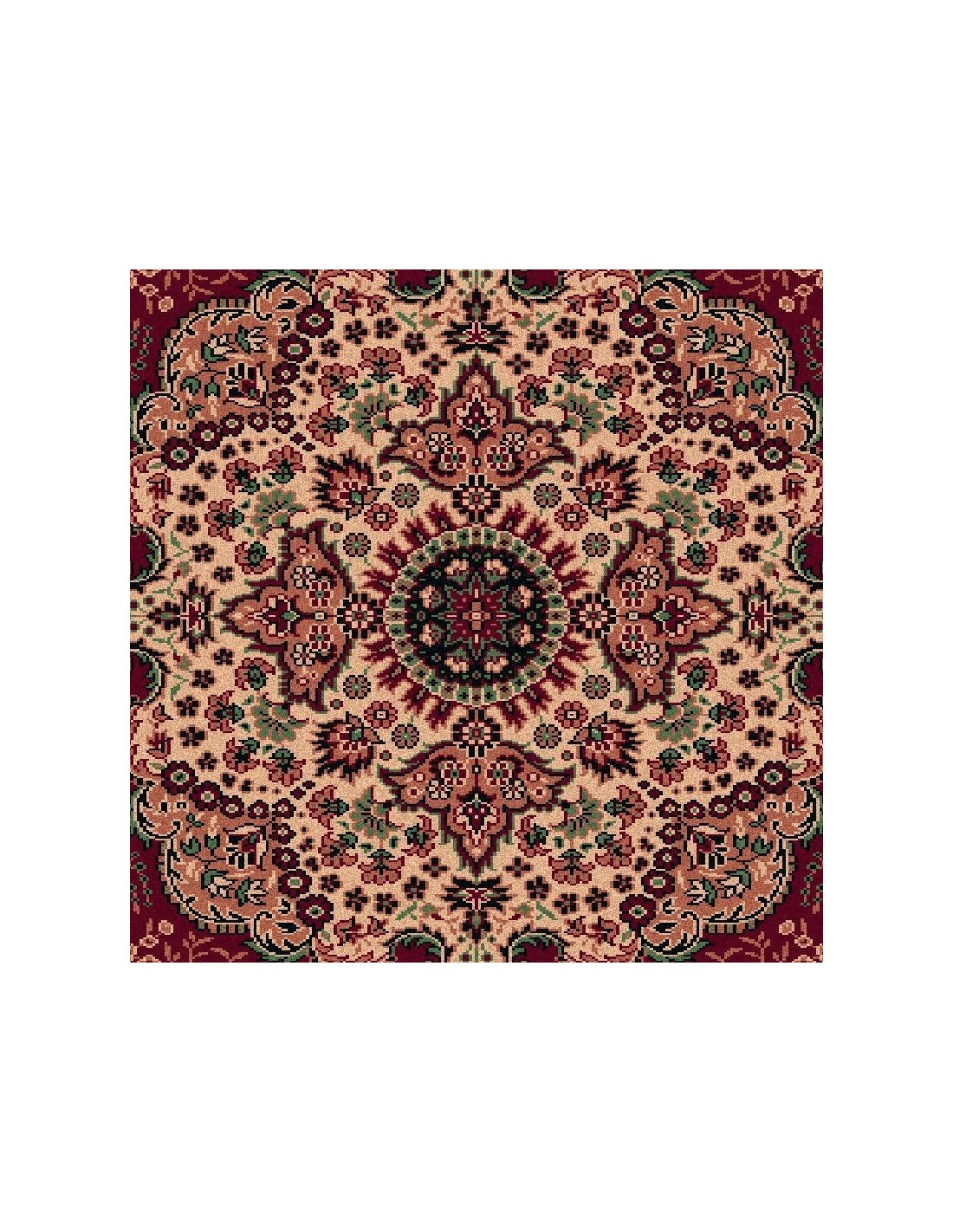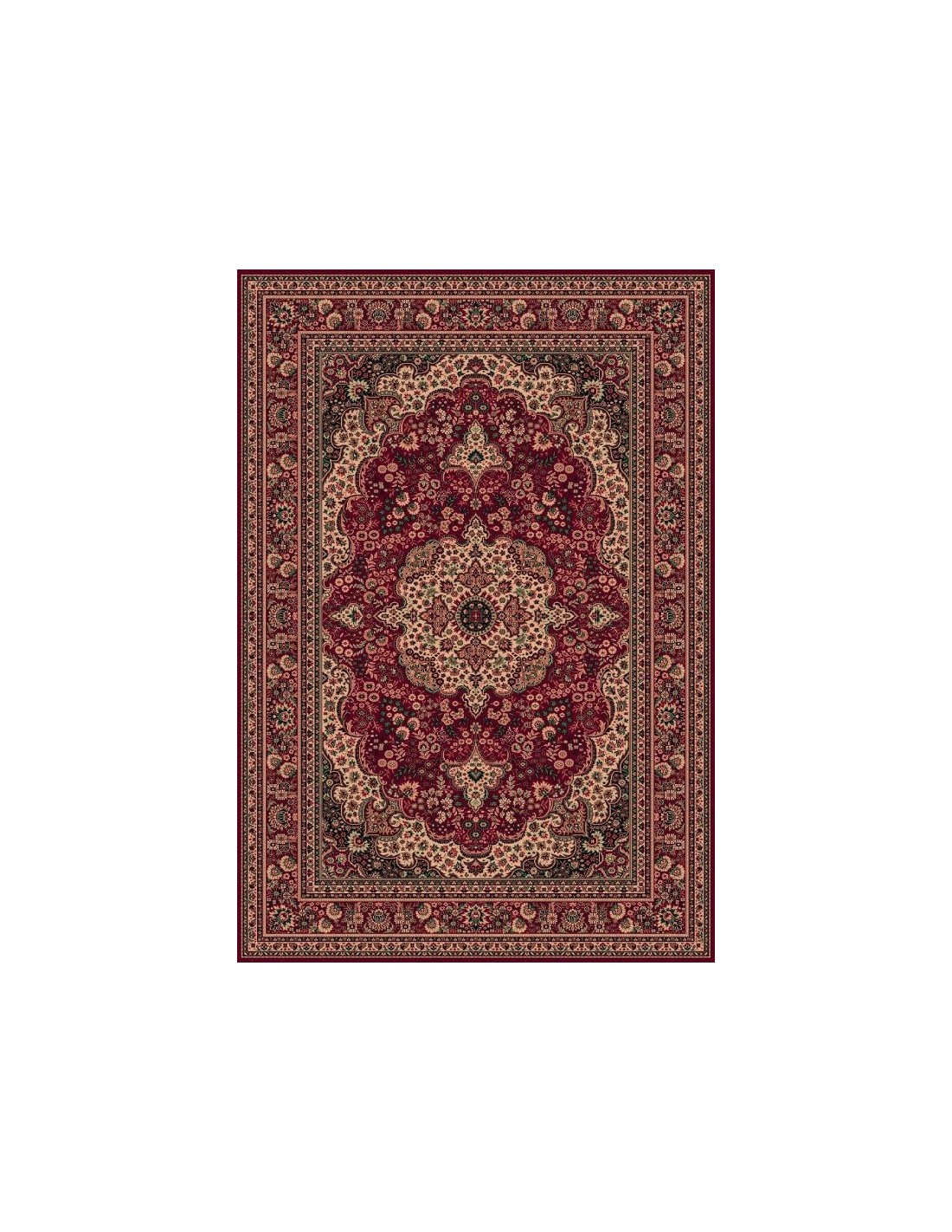 Tappeti classici lussuosi ed eleganti. L'ampio medaglione centrale, reso da una seria concentrica di medaglioni di colori contrastanti, caratterizza questo Carpet dallo stile classico. I colori rossi e blu, alternati con il crema, creano calore e un'atmosfera accogliente in ogni stanza. I dettagli a palmetta, floreali e gli arabeschi ricordano la Persia antica.