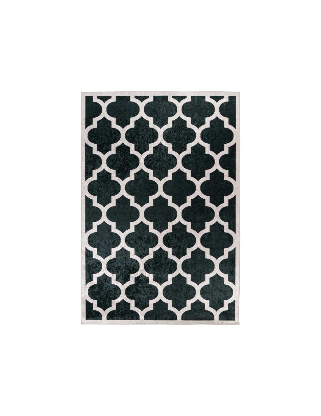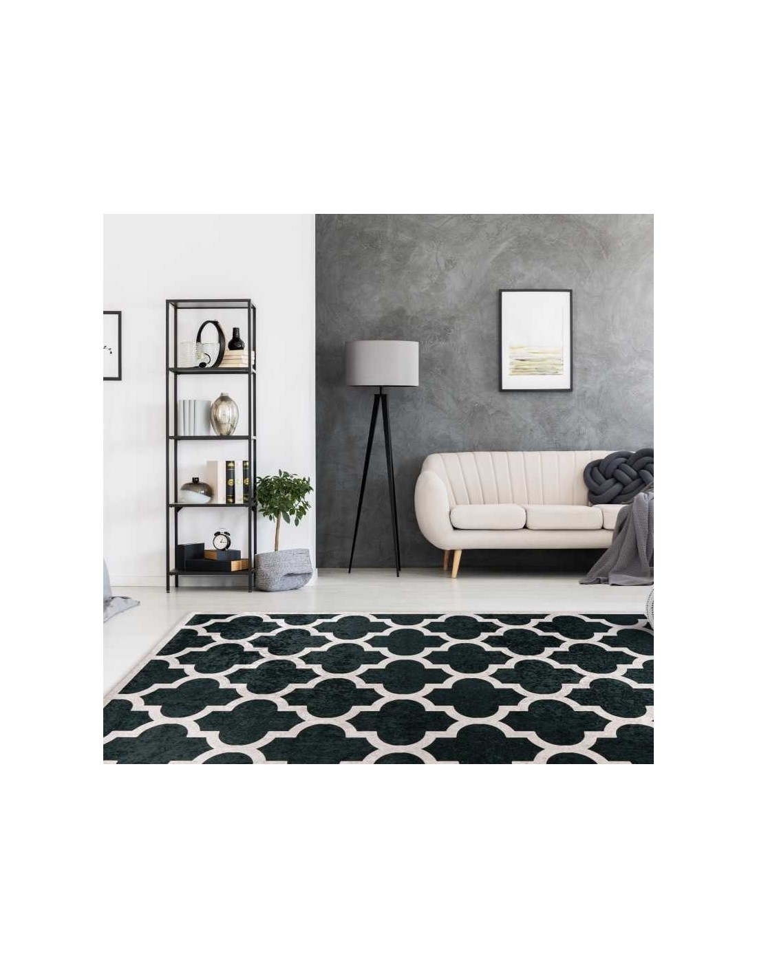 The 0.6cm thickness gives the rug a soft feel underfoot, without feeling bulky or difficult to place under furniture or doors. The black and cream color combination creates a charming and versatile visual effect, suitable for both contemporary and more traditional interiors. The carpet pattern, characterized by elegant contrasts and sophisticated details, manages to capture attention without overwhelming the surrounding environment.
