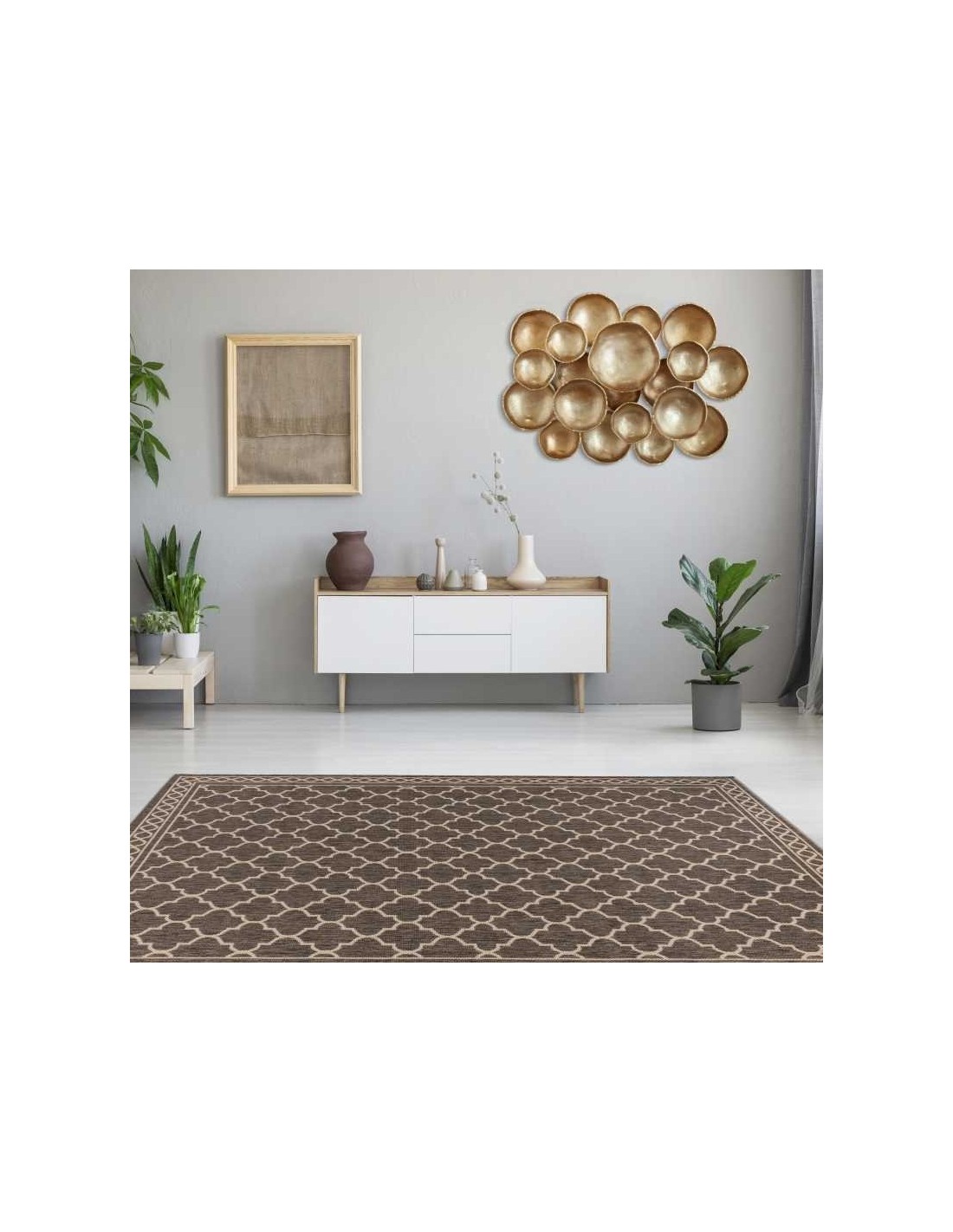 The design of the Gela 300 brown carpet is characterized by an elegant brown shade that adds a touch of warmth and welcome to environments, easily adapting to different furnishing styles, both traditional and modern. The machine-made workmanship, made in Egypt, ensures that each piece is well finished and of high quality, with precise details that give the carpet a sophisticated and refined appearance in every part.