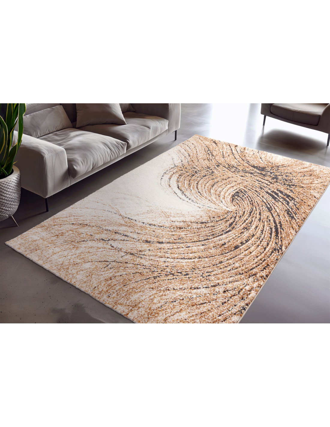 Elevate your space with the Bologna 462 terra rug, featuring a modern fantasy swirl pattern in warm terra cotta tones accented by cream and black. This machine-woven carpet combines artistic flair with durability, crafted from a soft yet resilient synthetic blend. Its 2.2 cm plush pile adds comfort underfoot while anchoring your room with style. Perfect for living rooms, bedrooms, or offices, this rug brings warmth and depth without overpowering your décor. Easy to maintain and available in multiple sizes, it’s an ideal choice for those seeking a striking, practical addition to their home.