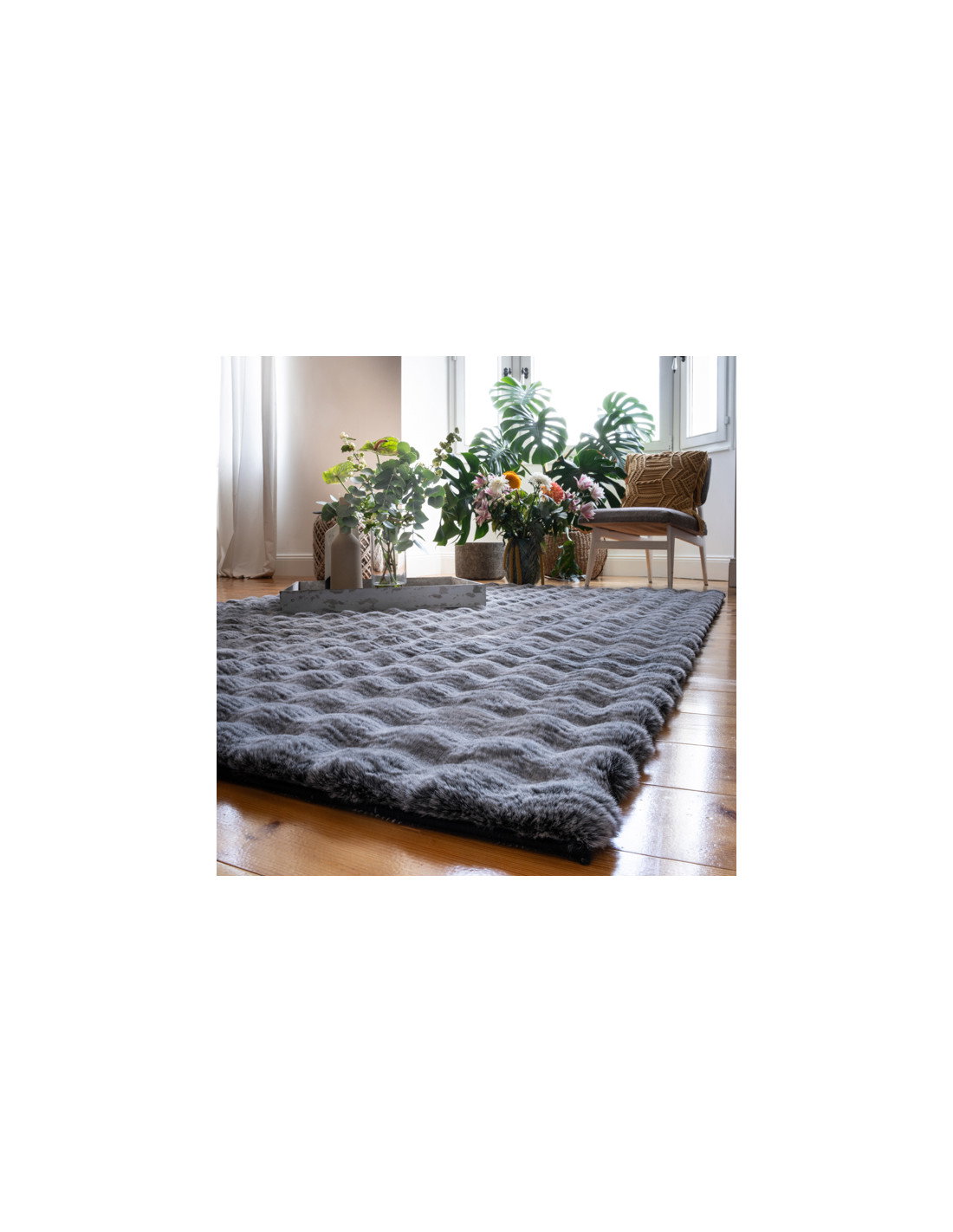 The rug’s anthracite shade is a sophisticated alternative to traditional black or gray, offering a subtle richness that pairs beautifully with both light and dark furnishings. Its understated elegance allows it to act as a grounding element in your room, balancing bold colors or patterns elsewhere in your décor. The soft texture invites you to walk barefoot, making it a cozy addition for chilly mornings or relaxing evenings.