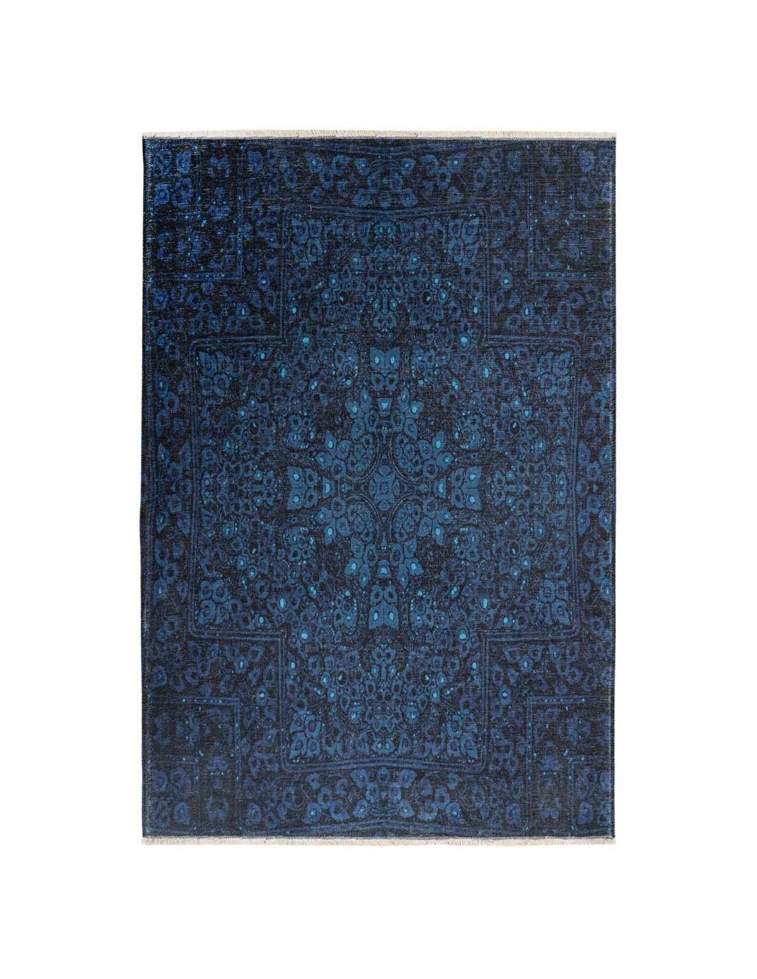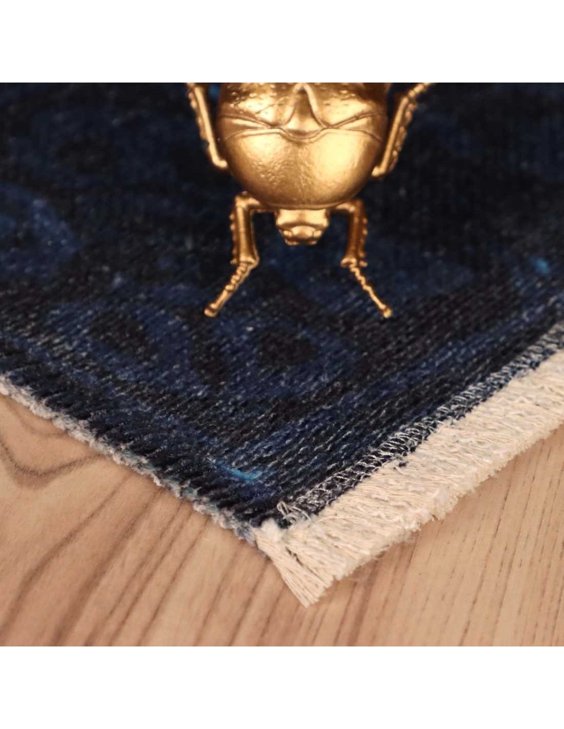 Il tappeto Azteca 550 blu è in materiale sintetico (100 % poliestere) con lo spessore di cm.0,6 e realizzato in Turchia dal brand Obsession.