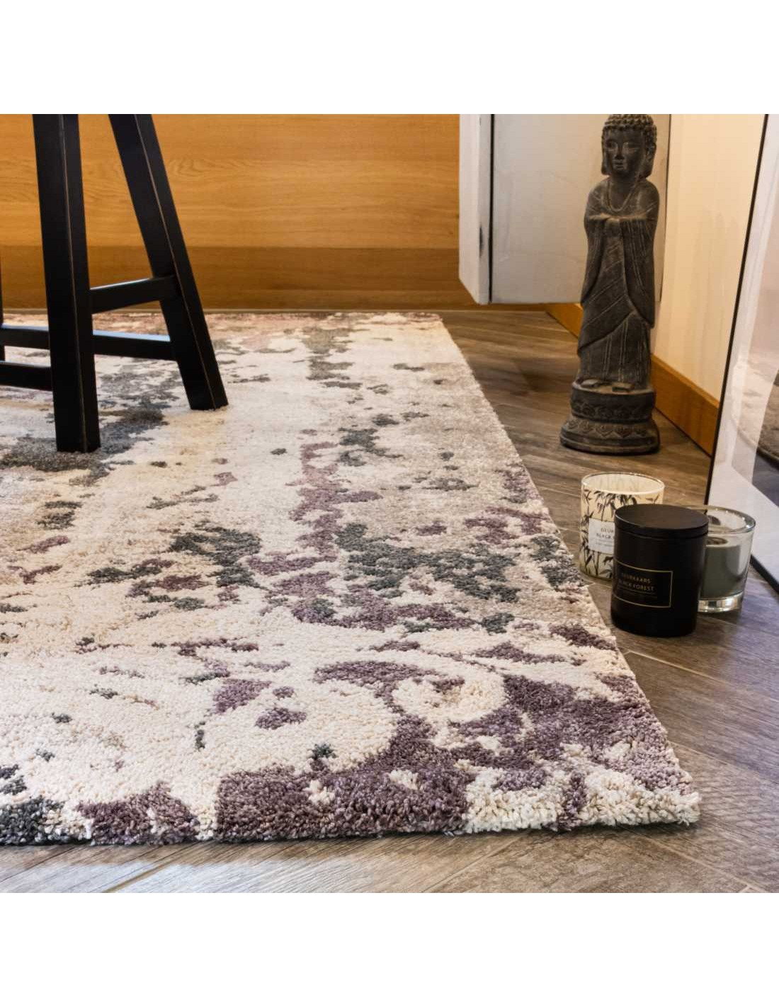 Il tappeto Nassau 770 porpora è in materiale sintetico (100 % polipropilene) con lo spessore di cm.1,5 e realizzato in Turchia dal brand Obsession.
