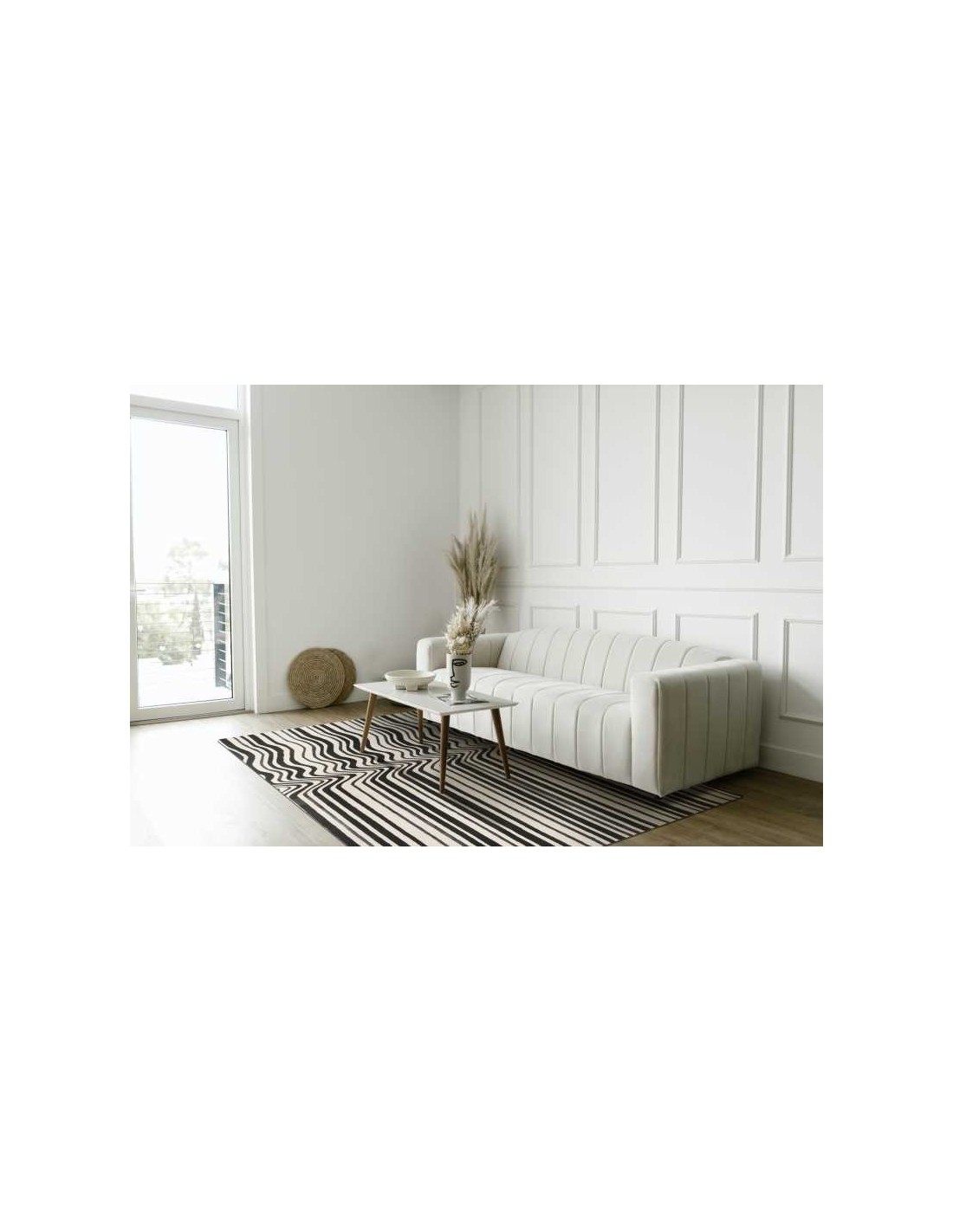 The Alto Blue boasts a modest pile height of 0.8 cm, providing a sleek profile that is both comfortable underfoot and easy to maintain. The material composition is a thoughtful blend of sustainability, durability, and practicality, with 24% recycled cotton, 4% RPET, and a robust 72% PES, ensuring that this rug not only looks good but also contributes positively to the environment. Its machine washable feature means that keeping it clean and fresh is as simple as it gets, perfect for busy households.