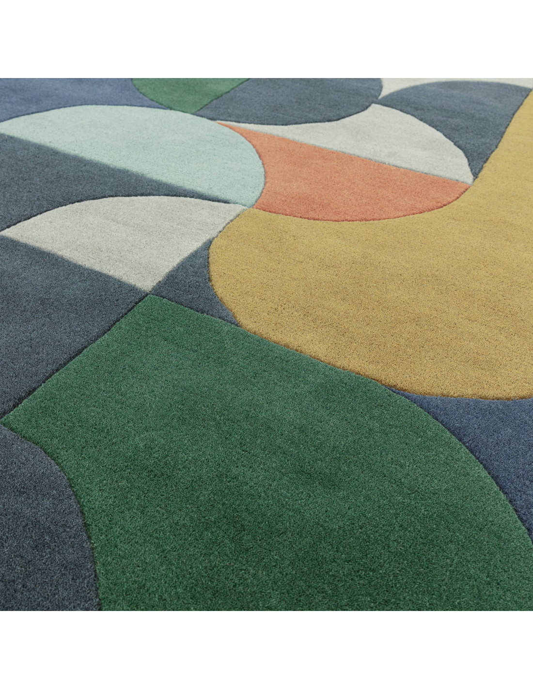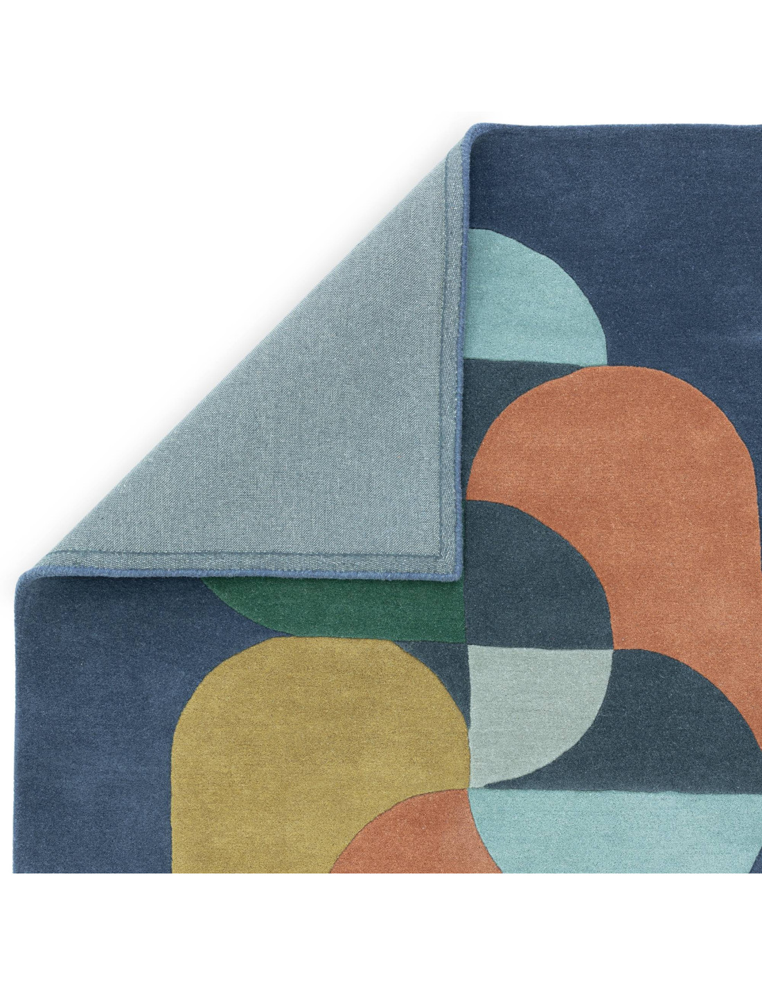 Discover the Matrix 91 Statement Navy, a modern designer rug that brings bold geometric flair to any room. Its deep navy backdrop highlights an abstract mix of muted green, mustard yellow, burnt orange, soft blue, and charcoal gray shapes. The blend of rounded and sharp forms creates a lively, artistic pattern that energizes your space. Crafted from 100% natural wool, this rug offers a plush, soft texture with lasting durability. Perfect for living rooms or offices, it adds a sophisticated pop of color and style while remaining easy to maintain and wonderfully comfortable underfoot.