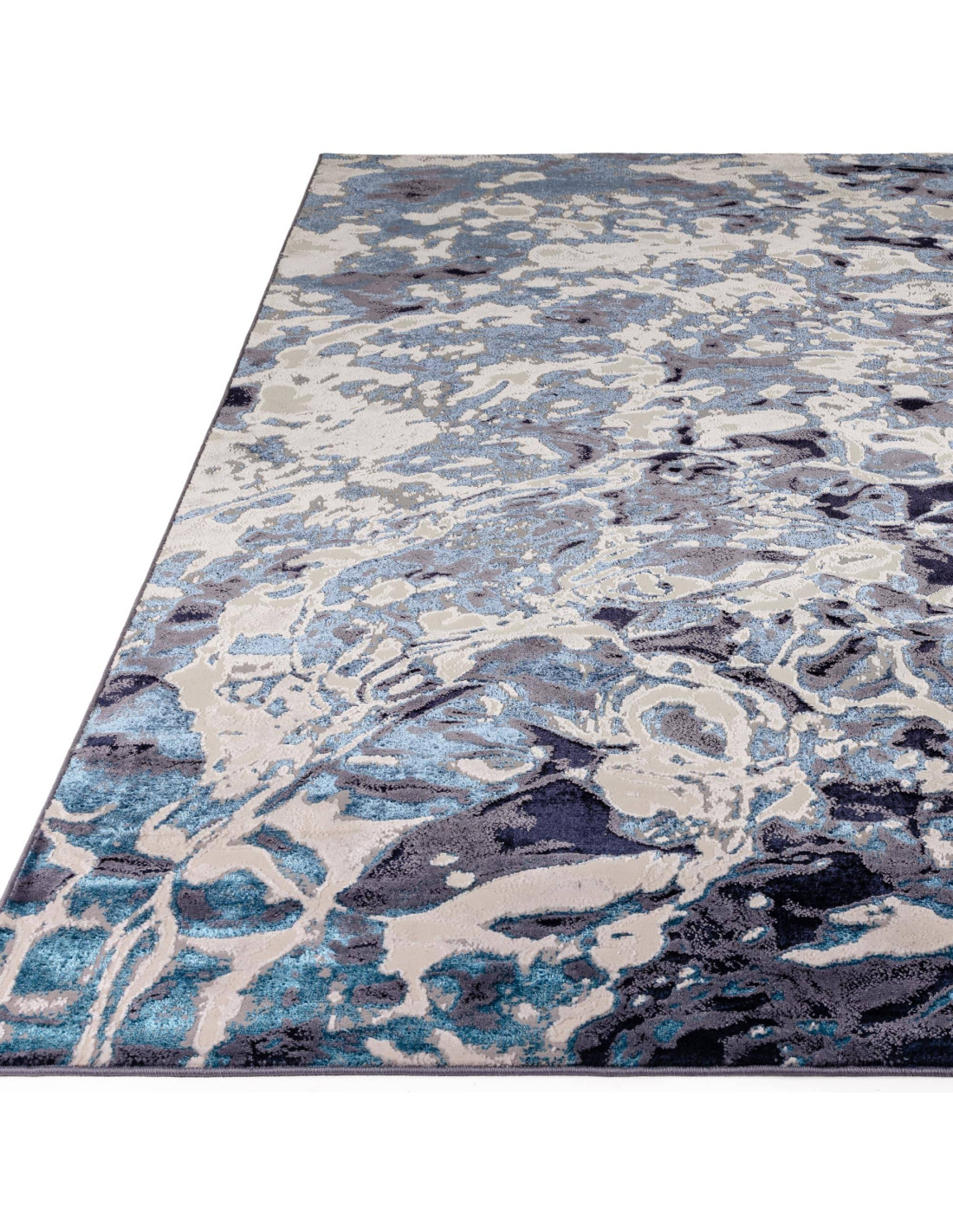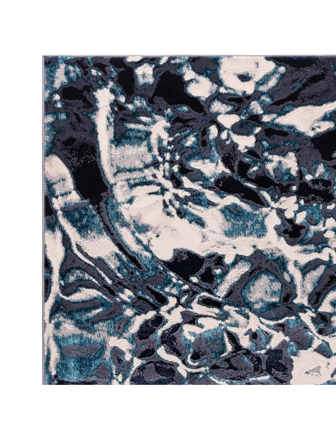 Transform your living space with the captivating charm of the Aurora Foam AU21 rug, a stunning example of modern luxury rugs that effortlessly blends artistic expression with practical design. This exquisite piece features an abstract fantasy pattern that mimics the fluid, mesmerizing movement of water or swirling clouds, rendered in a sophisticated palette of deep navy, soft cream, and hints of teal blue. The interplay of these colors creates a dynamic visual texture that adds depth and intrigue to any room.