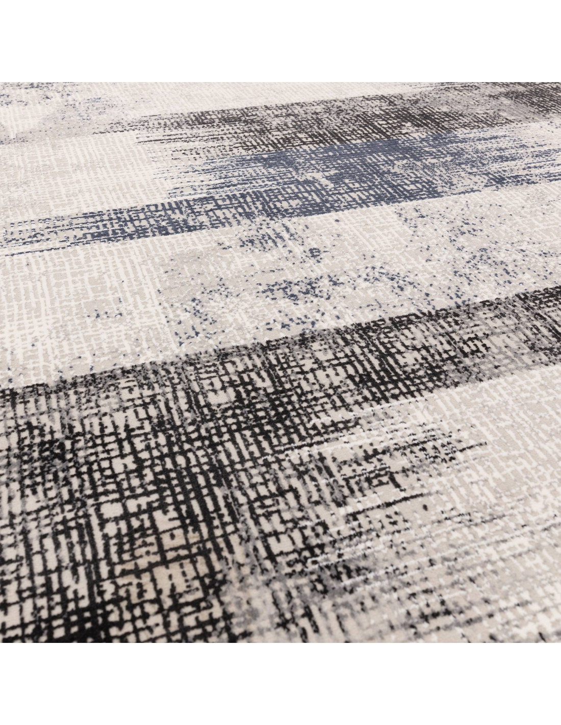 Elevate your living space with the Kuza Lines Blue rug, a stunning example of modern luxury rugs that effortlessly blends style and comfort. This exquisite piece features an abstract fantasy pattern in soothing shades of blue, black, and soft beige, creating a visually captivating effect that adds depth and character to any room. The design mimics a textured, almost painterly look with horizontal lines and blurred blocks, giving it a contemporary edge that complements both minimalist and eclectic interiors.