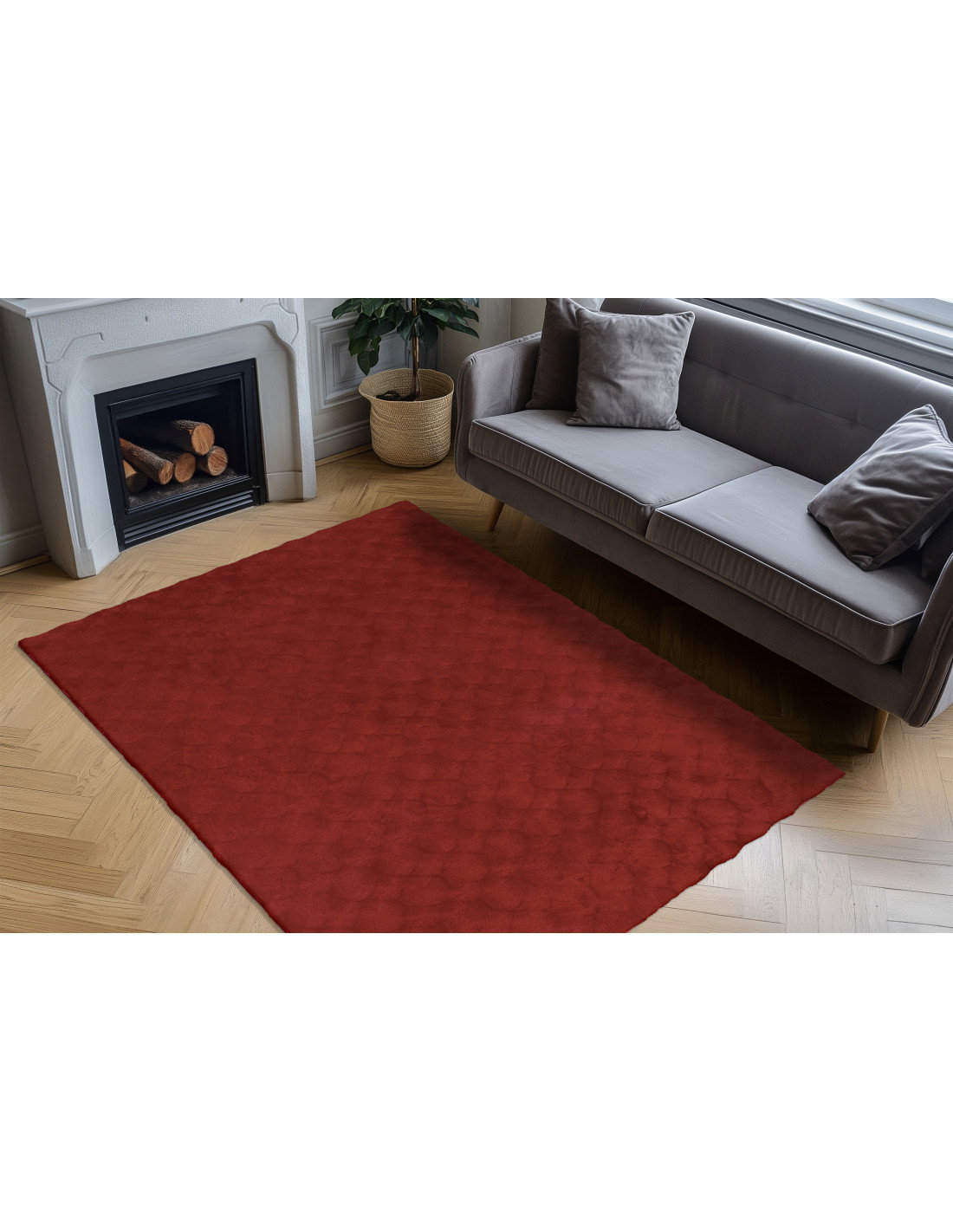 Available in two generous sizes, 120 cm and 200 cm in diameter, this rug fits perfectly in various spaces—from cozy reading nooks and bedrooms to spacious living rooms and dining areas. Its round shape softens the edges of your room, creating a harmonious flow that balances angular furniture and architectural lines. The vibrant red color acts as a statement piece, energizing your space while maintaining a sophisticated look.