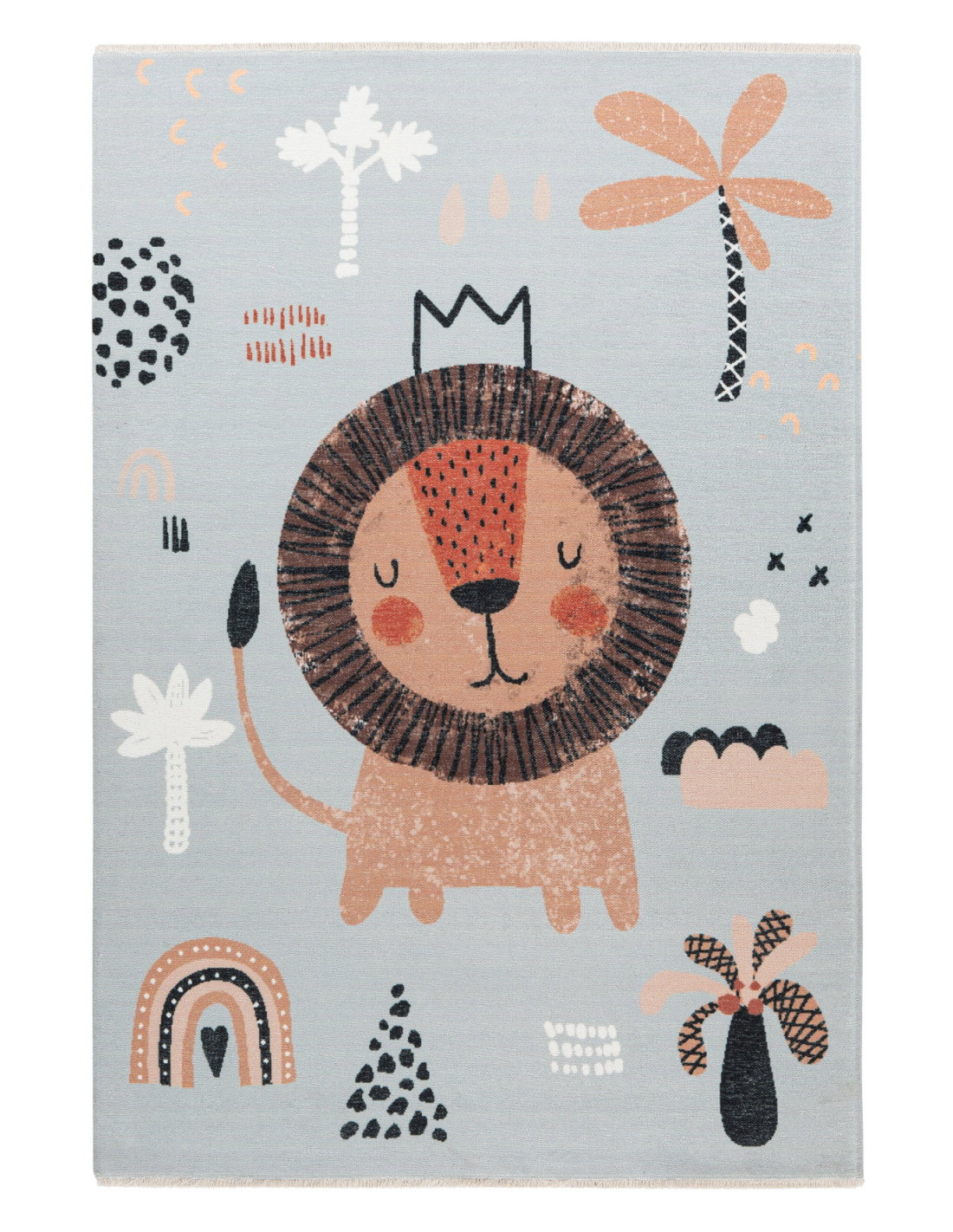 Add charm and eco-friendly comfort to your child’s space with the Greta 626 lion rug. Featuring a playful lion design in soft terracotta, peach, and black accents against a calming light gray background, this rug brings warmth and creativity to any room. Made from 70% recycled cotton, it offers a soft, durable surface perfect for playtime. The machine-woven texture ensures long-lasting quality, while its manageable size fits perfectly in bedrooms or play areas. Easy to maintain and crafted with care, this delightful carpet blends modern style with sustainable living for a joyful, cozy atmosphere.