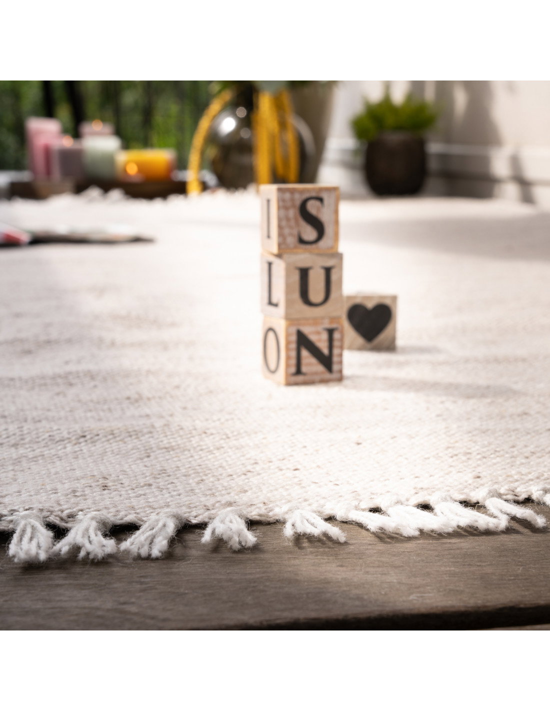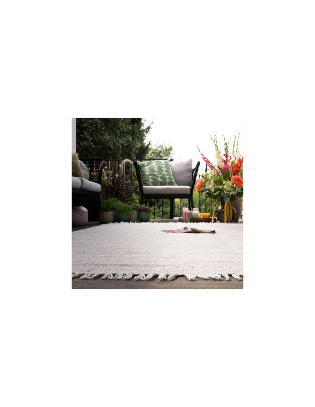 Expertly machine woven in India from 100% polyethylene, this synthetic rug combines durability with a refined look. The machine-made construction ensures a consistent, high-quality finish that stands up to everyday use while maintaining its smooth, inviting surface. Measuring 0.7 cm in thickness, the Nador 565 Ivory rug provides a comfortable underfoot feel without being bulky, making it ideal for layering or placing under furniture.