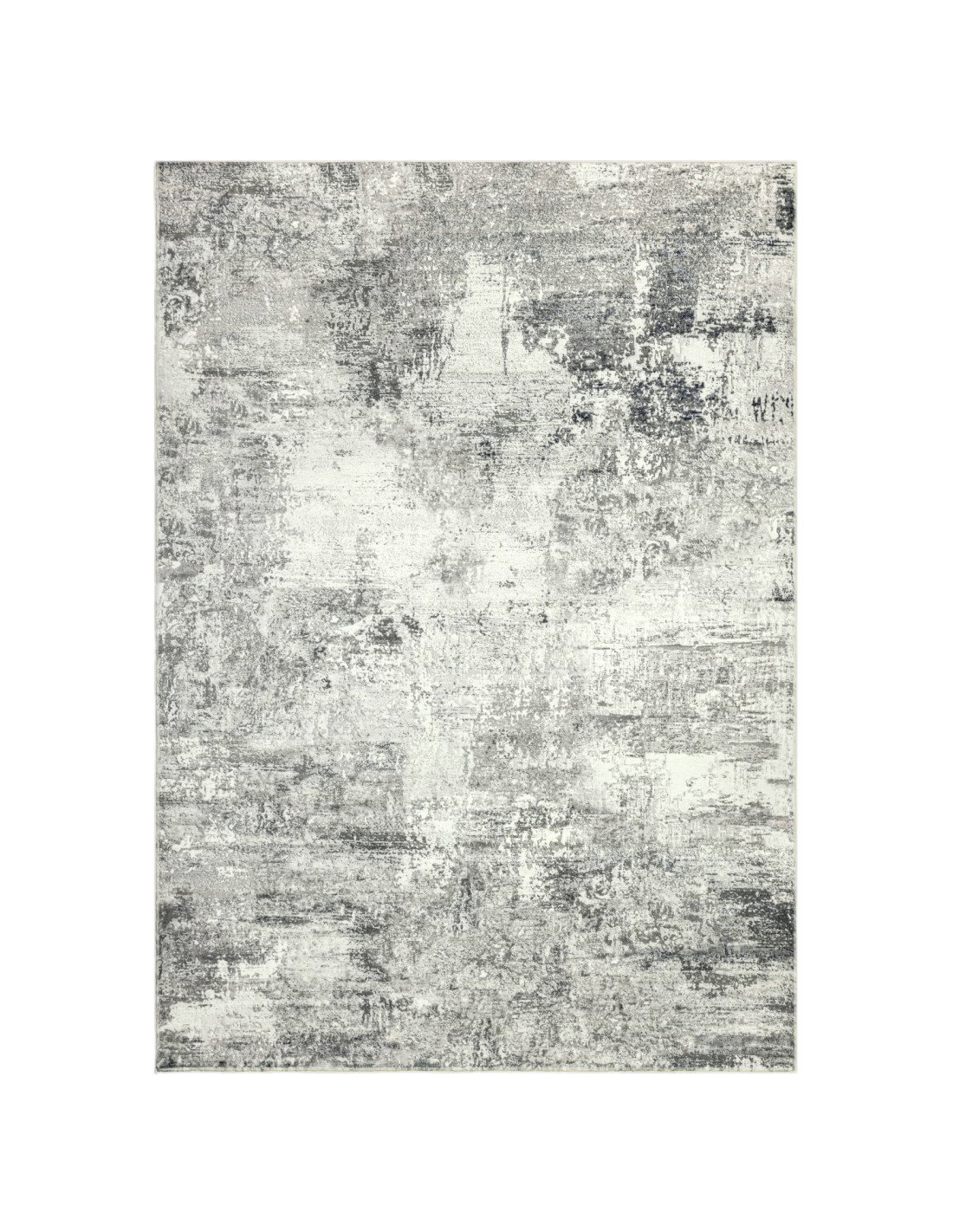 The pattern is artfully abstract, with a textured appearance that mimics the natural wear and patina of an antique rug. This nuanced design adds depth and interest without overwhelming your décor, allowing it to complement a wide range of interior styles—from minimalist modern to cozy rustic. The muted grey tones provide a neutral backdrop that enhances your furniture and accessories, while the intricate detailing invites closer inspection, making it a true conversation starter.