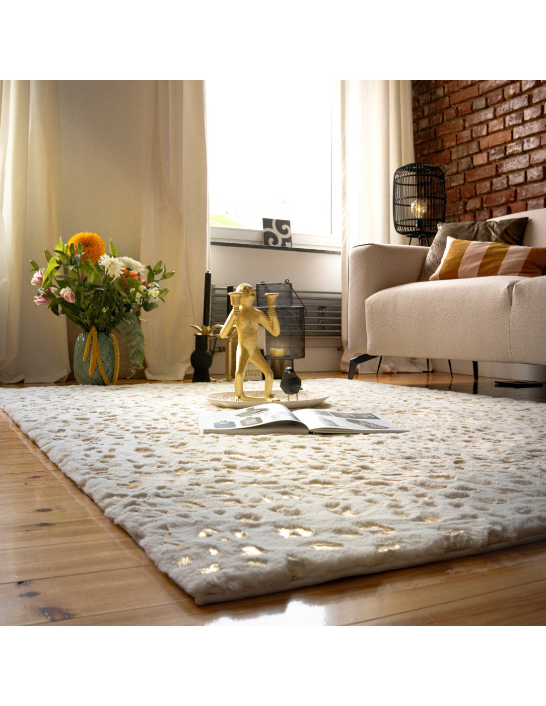 Elevate your space with the Safari 165 Cream rug, featuring a soft cream base and an elegant fantasy pattern inspired by nature’s subtle animal prints. Golden accents shimmer gently, adding warmth and sophistication without overpowering your décor. Crafted from durable, plush polyester with a 2.7 cm pile, this hand-sewn carpet offers lasting comfort and style. Its neutral tones blend effortlessly with modern, minimalist, or eclectic interiors, making it a versatile choice for any room. Available in multiple sizes, this rug brings a refined yet playful touch that transforms your home into a cozy, inviting retreat.
