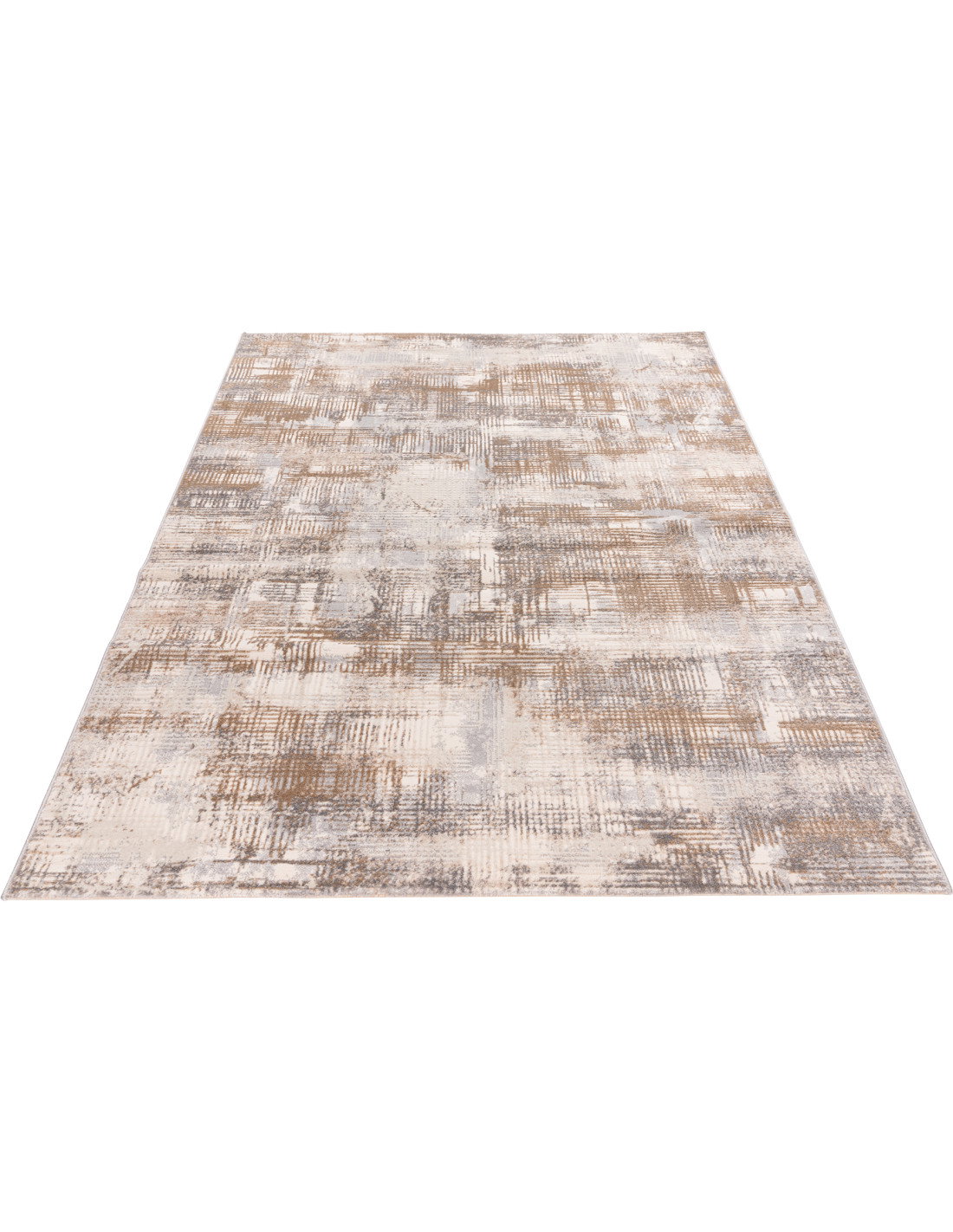 The design is reminiscent of an artistic canvas, where brush strokes and geometric lines merge to form a textured, layered effect. This intricate pattern adds depth and character without overwhelming the room, making it an ideal choice for living rooms, bedrooms, or even office spaces seeking a touch of understated elegance. The muted tones ensure the rug harmonizes with both bold and subtle décor elements, enhancing the overall ambiance with warmth and style.