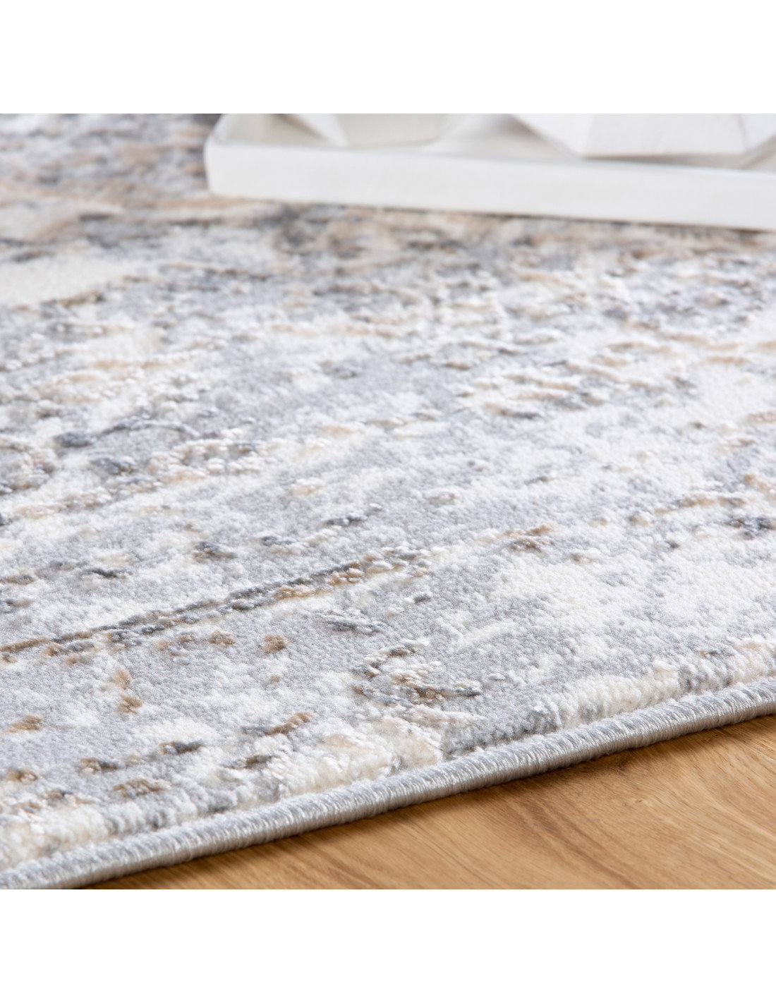 The muted taupe base is complemented by hints of silvery gray, giving the rug a versatile palette that fits effortlessly into a variety of décor styles—from contemporary minimalist to cozy transitional interiors. Its distressed, vintage-inspired look adds character and warmth, making it a perfect choice for living rooms, bedrooms, or even home offices where you want to introduce a touch of understated elegance.