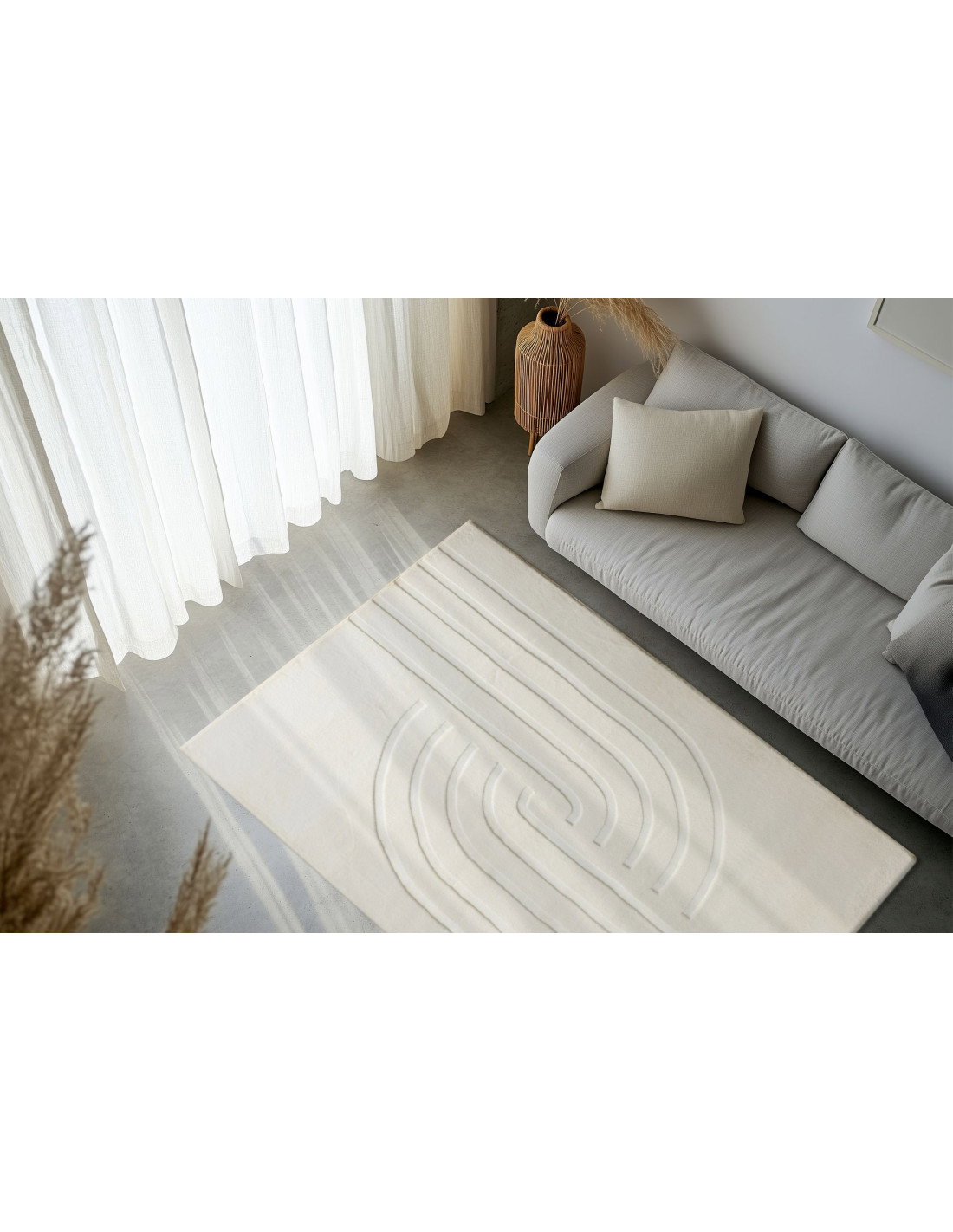Enhance your space with the Zen Deluxe 700 cream rug, featuring a soft cream hue and elegant geometric pattern. Its raised, curved lines add subtle texture and depth, creating a calm, inviting atmosphere. Made from a durable blend of polyester and wool, this plush rug offers comfort and easy care. Perfect for modern, minimalist, or Scandinavian interiors, it fits seamlessly into any room. Available in multiple sizes, this stylish carpet brings warmth and sophistication to your home with effortless charm.