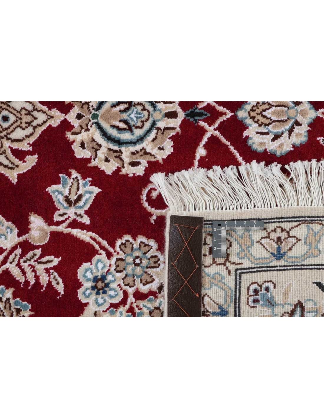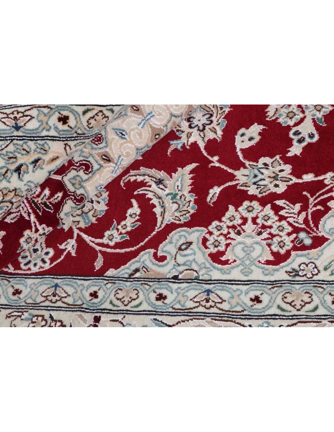 Nain rugs feature a cotton warp and weft, a wool pile, and delicate silk contours. Occasionally, silk is used more prominently in the base. The color palette is refined, showcasing nuances of ivory and cream, with subtle touches of red, green, and blue. Similar to the rugs from Isfahan, Nain rugs boast classical patterns that exude sophistication and timelessness. They are available in various sizes, including impressively large options of up to 60 square meters. Some of these grand Nain rugs even feature a luxurious pure silk pile. In fact, the largest Nain rug ever produced measured an astonishing 20 by 20 meters.