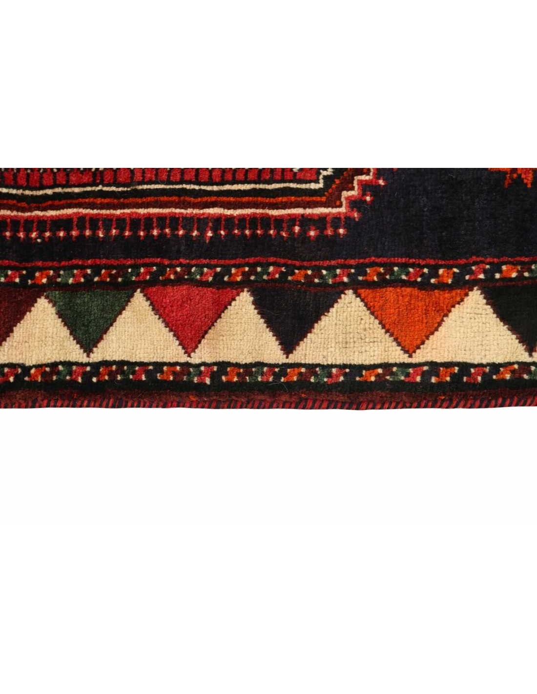 Characterized by a deep claret color combined with dark blue and small areas of white and green, Shiraz rugs emanate a sense of warmth and richness. The wool used in these rugs is exceptionally soft, and in some cases, a blend of darker wool and goat's hair is employed for both the warp and weft. The patterns are coarse and geometric, frequently resembling the distinctive Kashghai patterns. Delightful motifs of small, geometric birds and animals often adorn these rugs, adding a touch of vibrancy. Shiraz rugs are available in various sizes, although larger rugs are relatively rare.