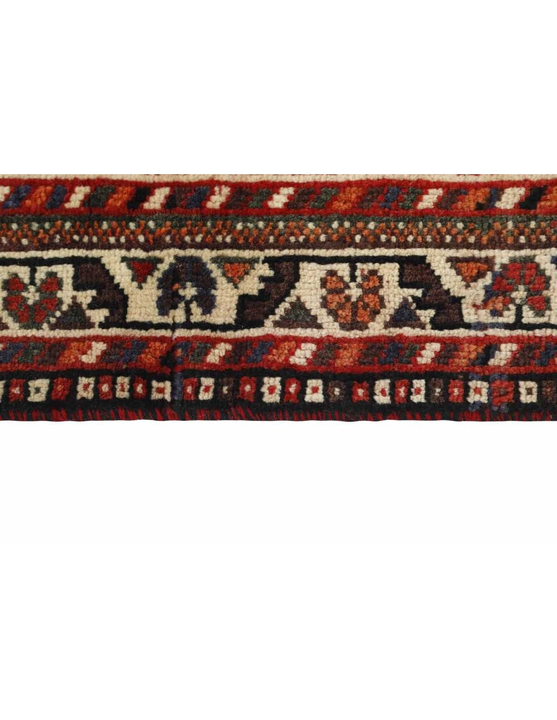 Characterized by a deep claret color combined with dark blue and small areas of white and green, Shiraz rugs emanate a sense of warmth and richness. The wool used in these rugs is exceptionally soft, and in some cases, a blend of darker wool and goat's hair is employed for both the warp and weft. The patterns are coarse and geometric, frequently resembling the distinctive Kashghai patterns. Delightful motifs of small, geometric birds and animals often adorn these rugs, adding a touch of vibrancy. Shiraz rugs are available in various sizes, although larger rugs are relatively rare.