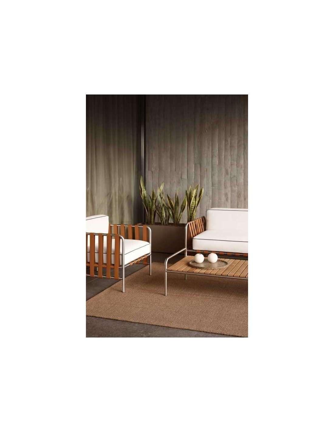 Saline provides texture and warmth to outdoor spaces with a careful selection of neutral and timeless colors. The collection is available in four options that display different earth and mineral tones, achieved by combining different ropes —smooth or zigzagged marbled— made of 100% recycled PET fibers which are dyed, spun and braided by hand