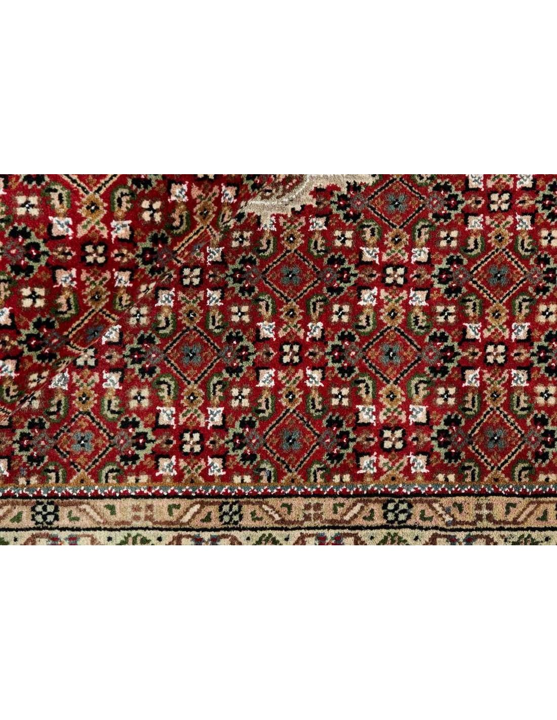Tabriz Indi rugs are hand-knotted using traditional techniques, exemplifying exceptional craftsmanship. The pile of these rugs is made from premium wool, known for its softness, durability, and natural resilience. The warp material is cotton, providing stability and strength to the rug's structure. With a knot density ranging from 150,000 to 250,000 knots per square meter, Tabriz Indi rugs showcase the intricate artistry and meticulous craftsmanship that make them truly remarkable.