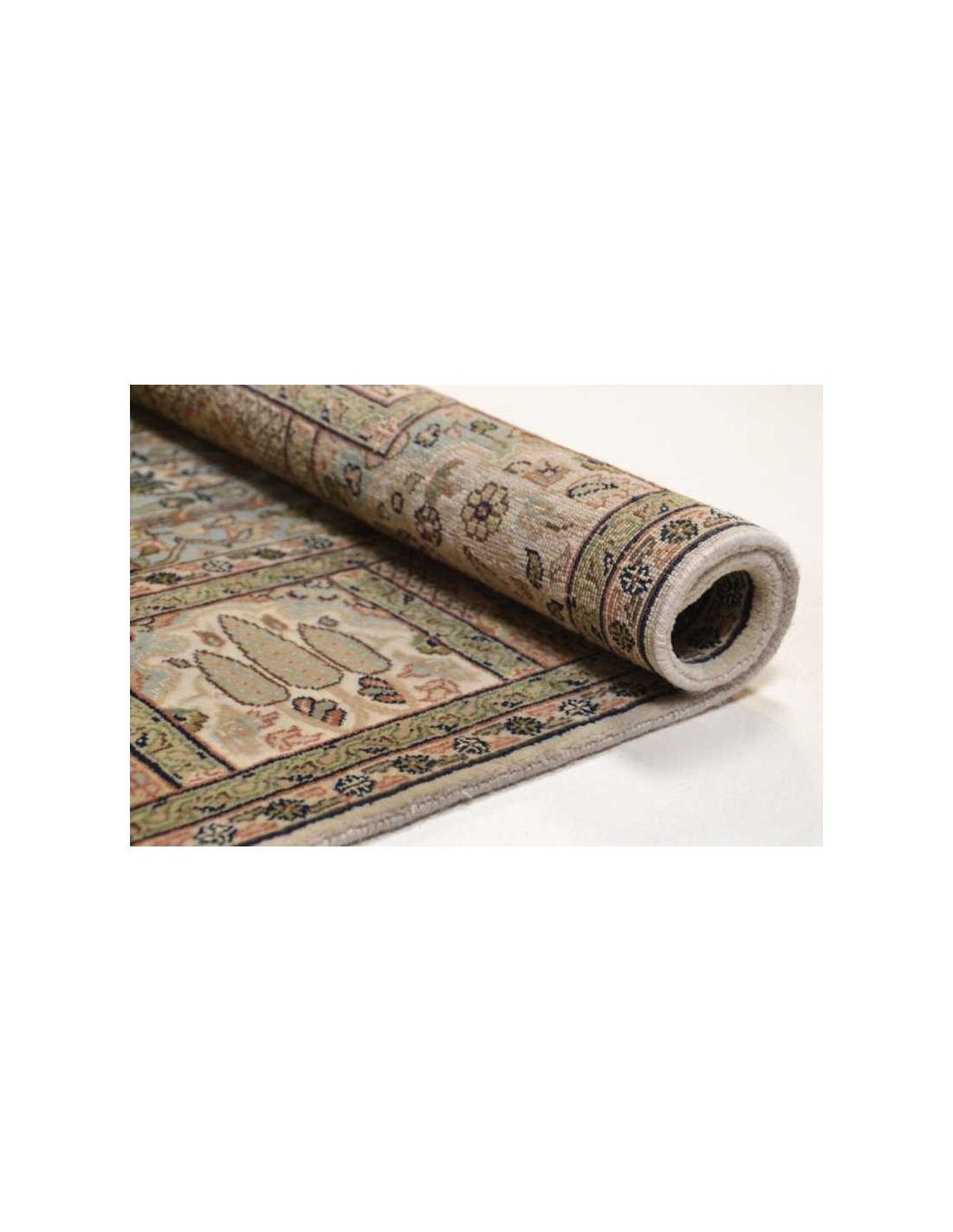 I nomadi delle steppe in Persia centrale create con questi magnifici campi tappeto la tua idea di giardino paradisiaco per la tua casa con viali ombrosi fresche e aiuole colorate e corsi d'acqua, dove increspature eterni acqua. Questo bel tappeto possiamo riadattare originale in India per voi. Il particolare pregio filato di lana con la seta abbinato il modello di giardino si verifica molto bello fuori pittoricamente e vivido. L'elevatissima densità dei nodi di ca.300.000 nodi per metro quadrato fornendo una riproduzione nitida forata del disegno. Con pieno di gioielli confine circonferenziale di questo tappeto orientale è un vero e proprio eye-catcher per la tua casa. Made è questo tappeto annodato a mano realizzato in 70% lana vergine e 30% seta pura