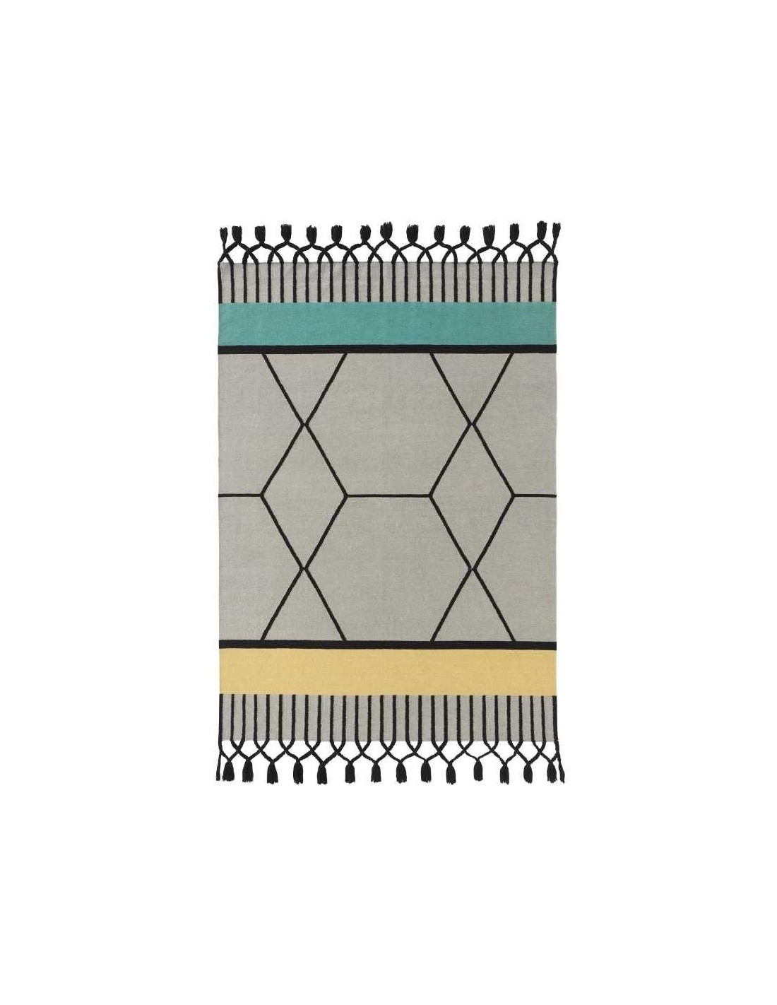 Il tappeto moderno Lima è una proposta unica della collezione Kilim, un design basato su un compendio eclettico di diversi elementi e forme geometriche. Rombi, esagoni, archi e strisce di colori solidi e diverse larghezze che, nel complesso, creano una composizione sorprendentemente leggera.