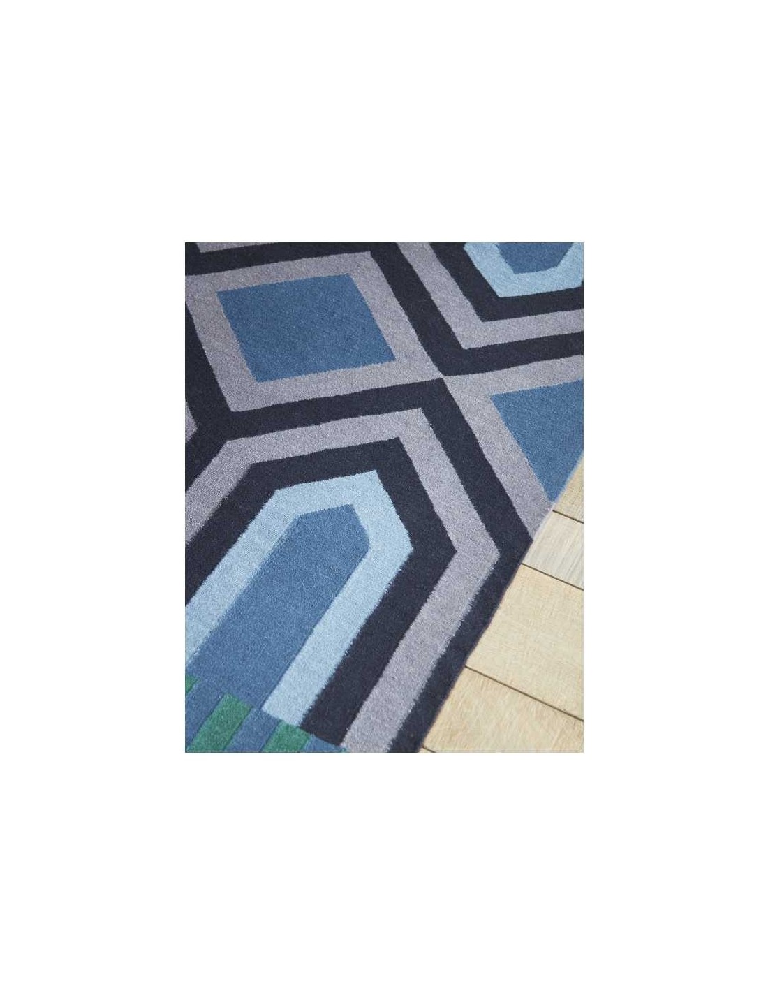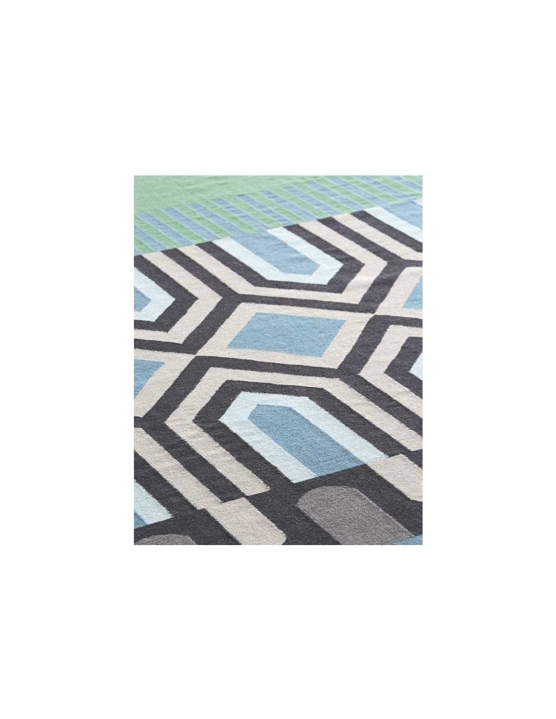 Questo modello nei toni verdi e blu della nostra serie Ndebele Kilim è ispirata dal modo in cui il popolo Ndebele del Sudafrica, da cui la collezione prende il nome, decora le facciate delle loro case con motivi geometrici dinamici e colorati. La designer Sandra Figuerola ha reinterpretato questi progetti in termini di tavolozza modello e colori e trasferirli a un supporto tessile che funziona perfettamente con gli spazi contemporanei.