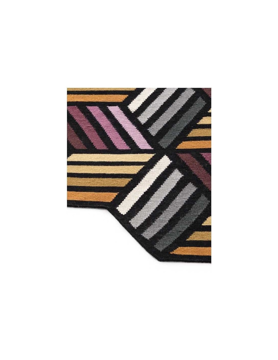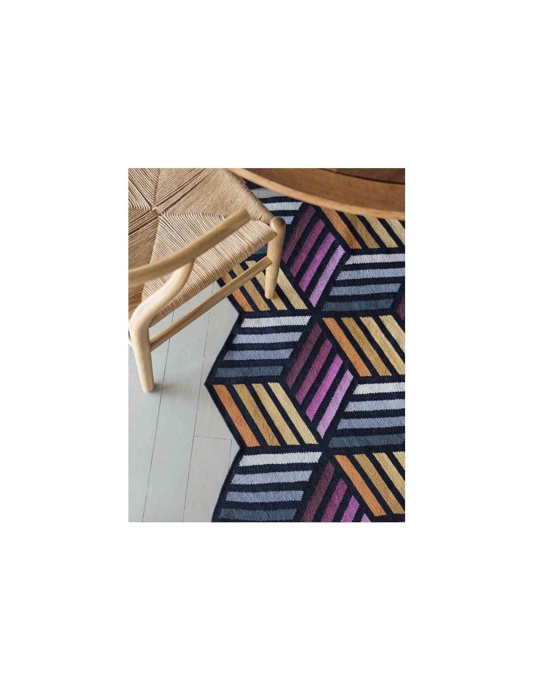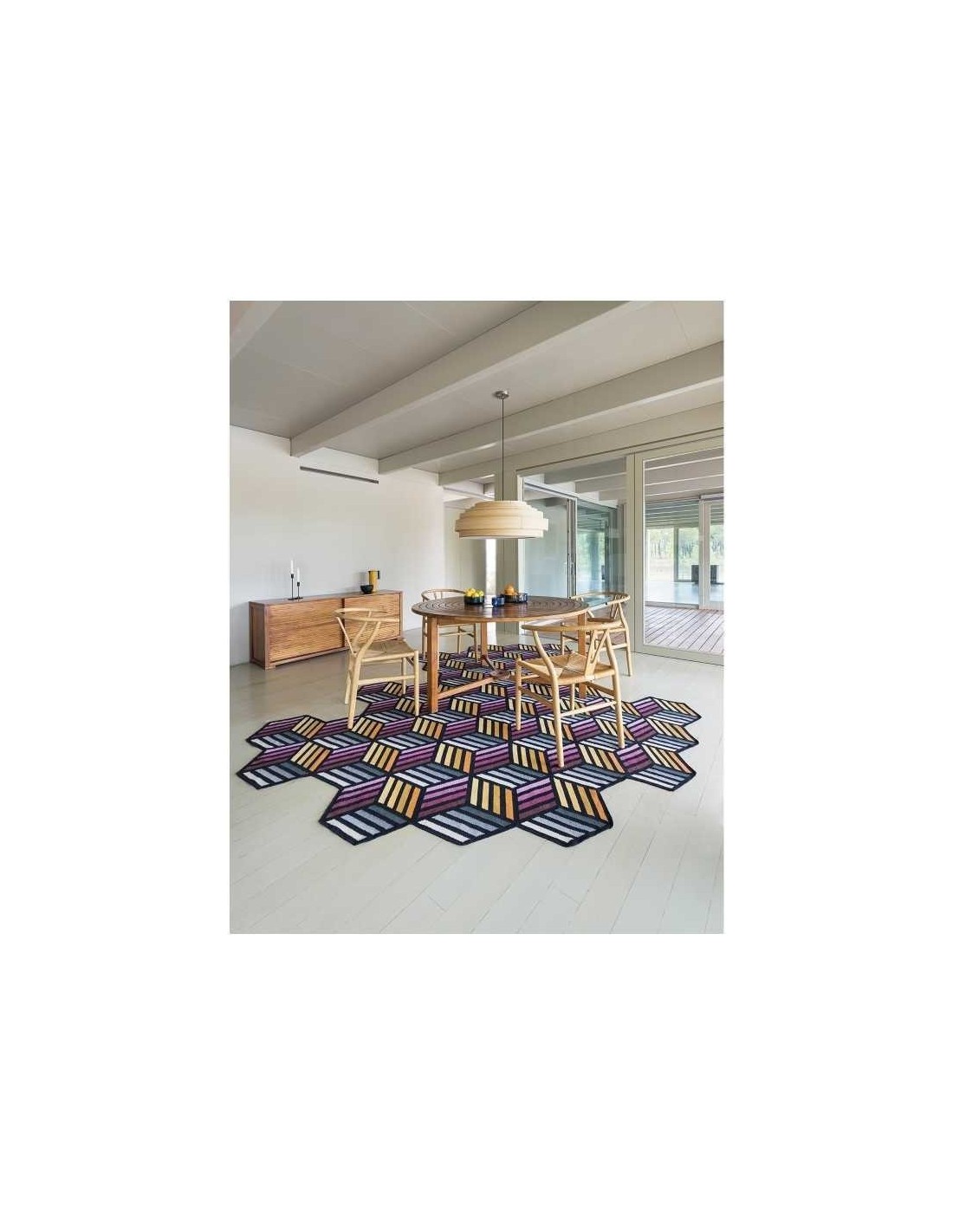 Questo modello è una combinazione di rettangoli, diamanti, quadrati e esagoni che, a seconda della prospettiva, assumonol'aspetto d i cubi e persino scalini. Il suo formato irregolare consente la combinazione con altri tappeti della stessa serie.