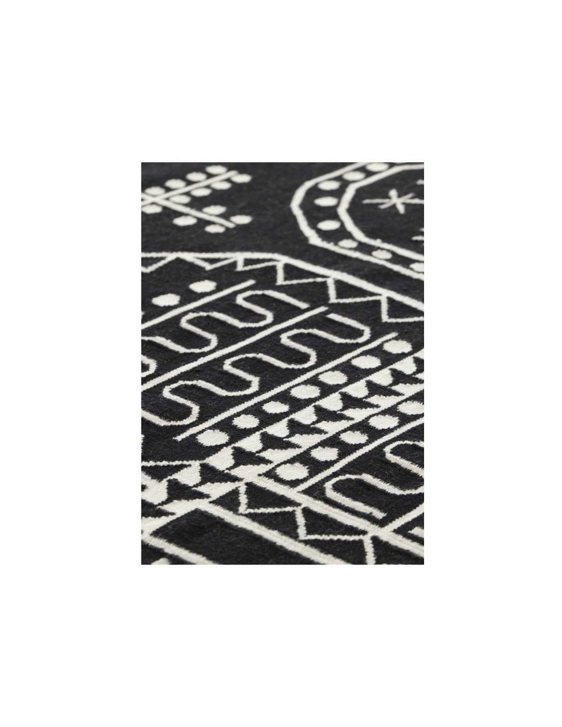 Il tappeto moderno Tasili è una delle proposte della collezione Kilim, un design di Sandra Figuerola con una marcata estetica grafica. Il suo schema alterna croci, punti e triangoli con motivi sinuosi o geometrici, generando una composizione simmetrica attraente in bianco e nero che evoca alcuni disegni di civiltà perse - il suo nome, in riferimento a quei disegni trovati a Tassili, in Algeria.