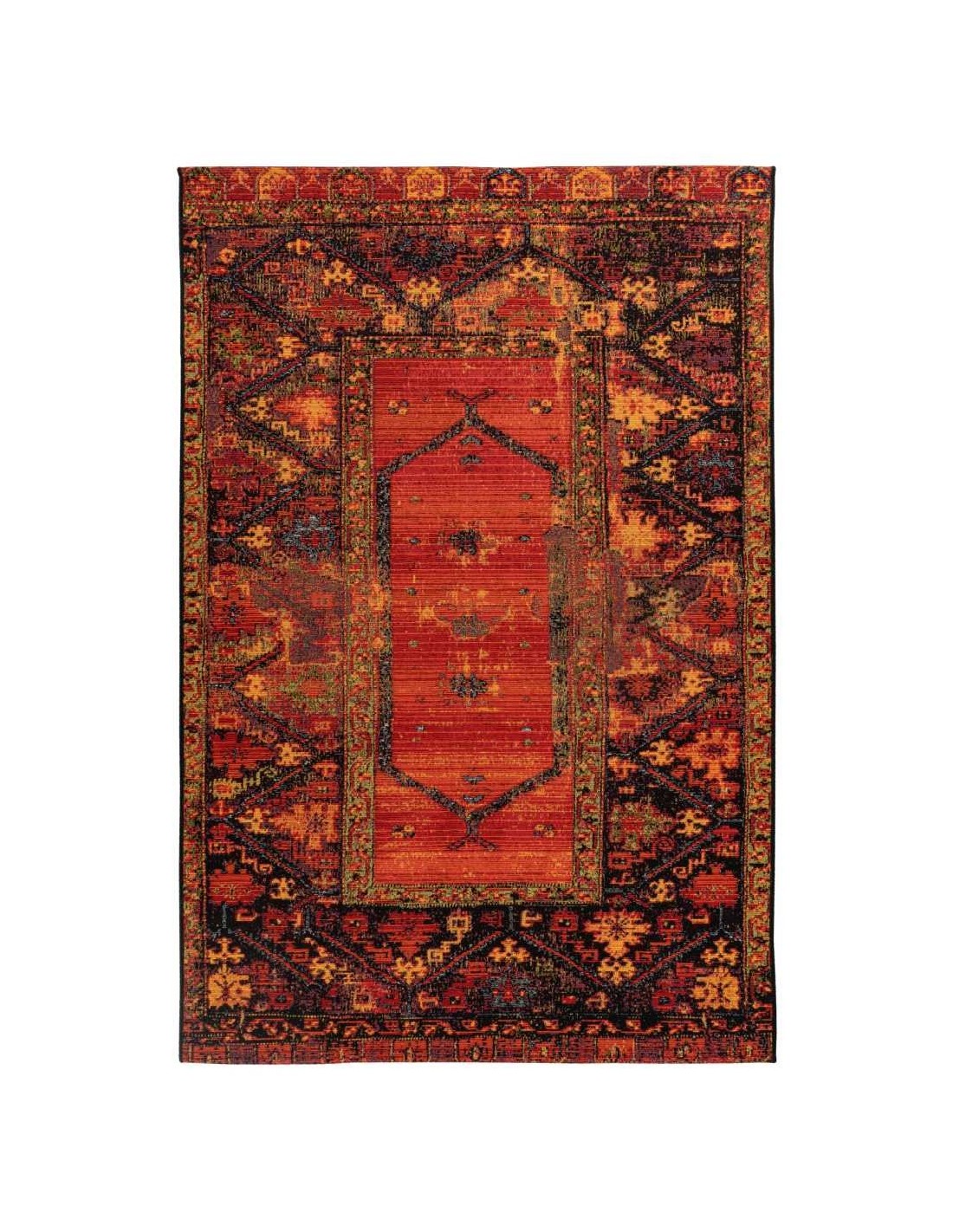 Il tappeto Gobelina 640 multi è in materiale sintetico (76 % polipropilene, 24 % poliestere) con lo spessore di cm.0,6 e realizzato in Egitto dal brand Obsession.