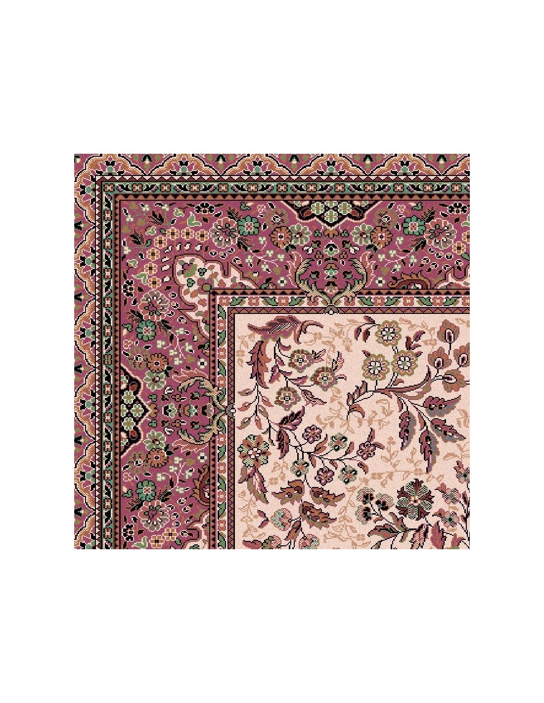 Tappeto Isfahan Lana Crema-Rosa 1236