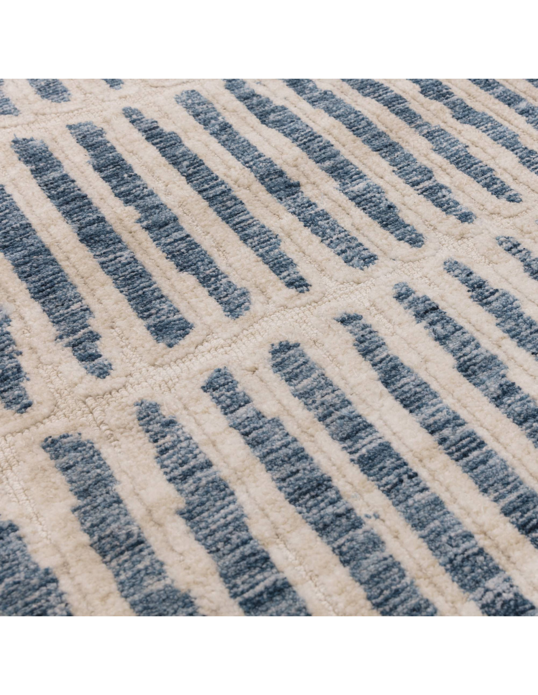 Il tappeto Mason Grid si distingue per il suo design geometrico a righe verticali irregolari, che dona un tocco di modernità e movimento a qualsiasi soggiorno. La palette cromatica combina un fondo chiaro con dettagli blu scuro, creando un contrasto elegante e raffinato, perfetto per ambienti luminosi e contemporanei. Realizzato in microfibra di poliestere, offre una superficie morbida e confortevole, ideale per chi cerca stile e praticità. Un vero must tra i tappeti contemporanei moderni, capace di valorizzare con semplicità ogni spazio living.