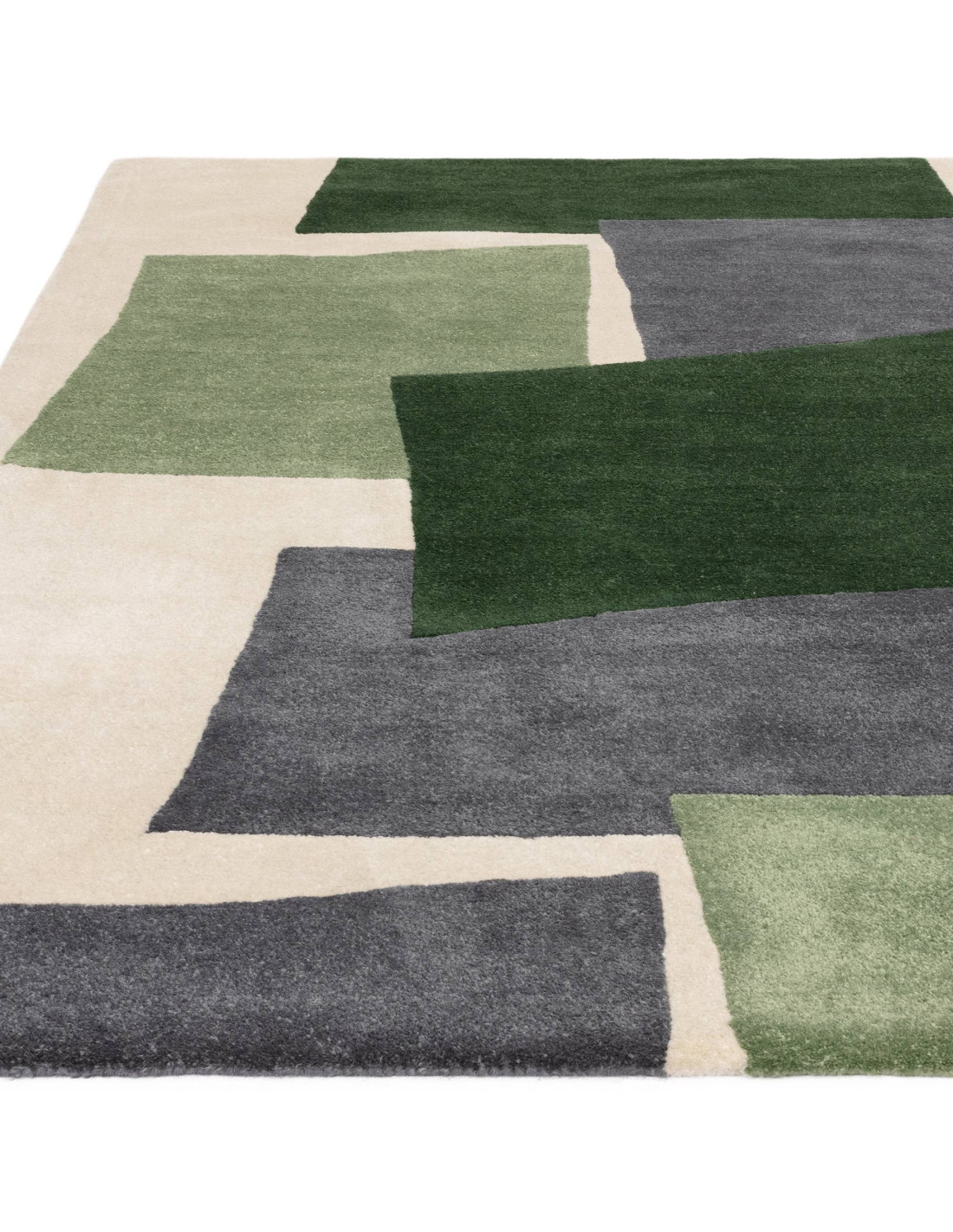 Tappeto Romy 12 Papercut Green: design geometrico e comfort per un soggiorno moderno e raffinato. Perfetto tra i tappeti contem