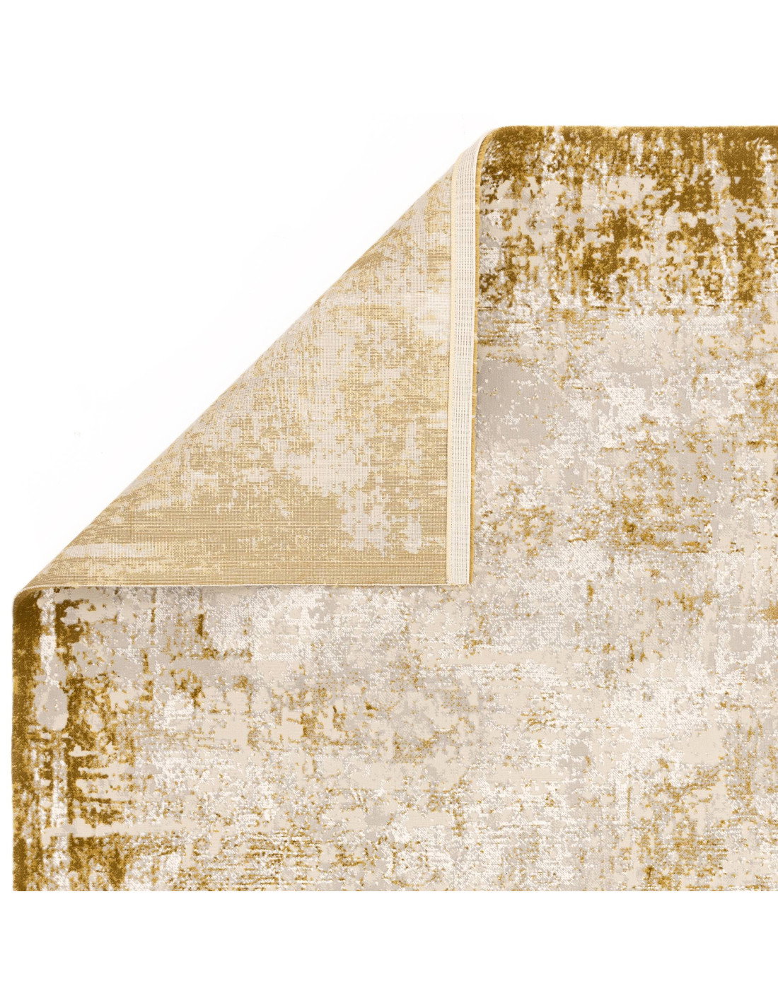 Il tappeto Kuza Border Gold è la scelta perfetta per chi desidera un complemento d’arredo raffinato e contemporaneo, capace di donare un tocco di luce e calore a qualsiasi ambiente. La sua tonalità dorata, arricchita da un motivo a cornice delicatamente sfumato, crea un effetto visivo di grande impatto, che richiama i tappeti effetto seta e i tappeti design lucidi, rendendo lo spazio più accogliente e sofisticato.
