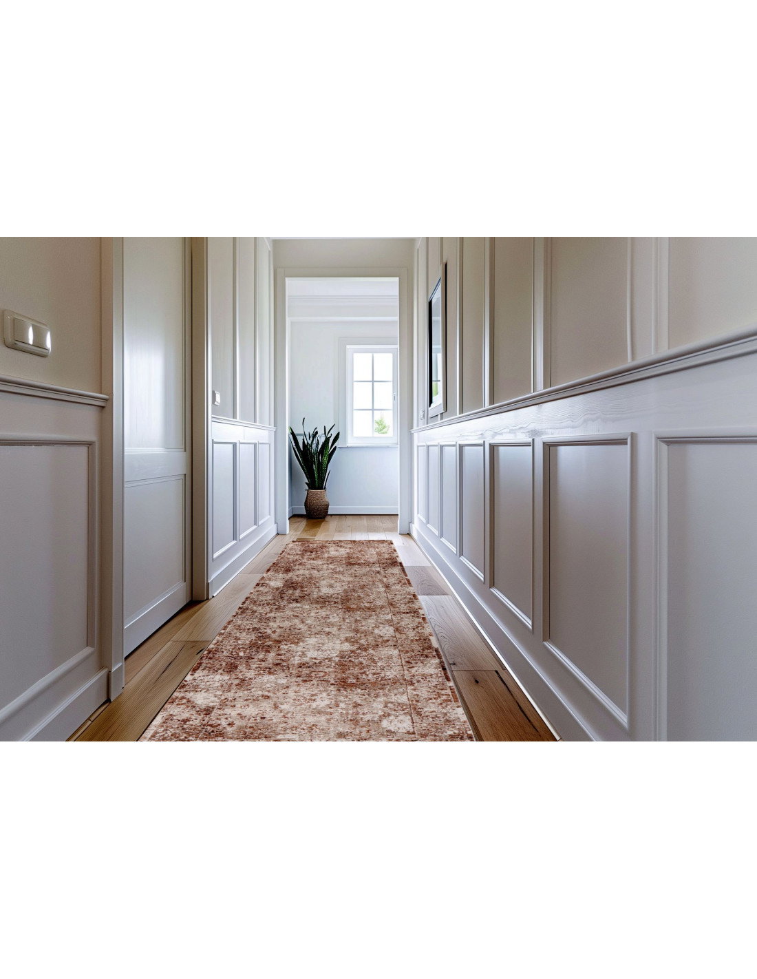 Il tappeto Bella 238 pesca è una scelta raffinata per chi desidera unire stile contemporaneo e praticità in un unico elemento d’arredo. La sua tonalità pesca, delicata e calda, si fonde armoniosamente con sfumature neutre e leggere variazioni cromatiche che creano un effetto visivo morbido e avvolgente. Il design, pur mantenendo uno stile tinta unita, presenta un motivo leggermente sfumato e lavorato meccanicamente che richiama un’eleganza discreta, perfetta per ambienti moderni e minimalisti ma anche per spazi più classici che vogliono un tocco di modernità.