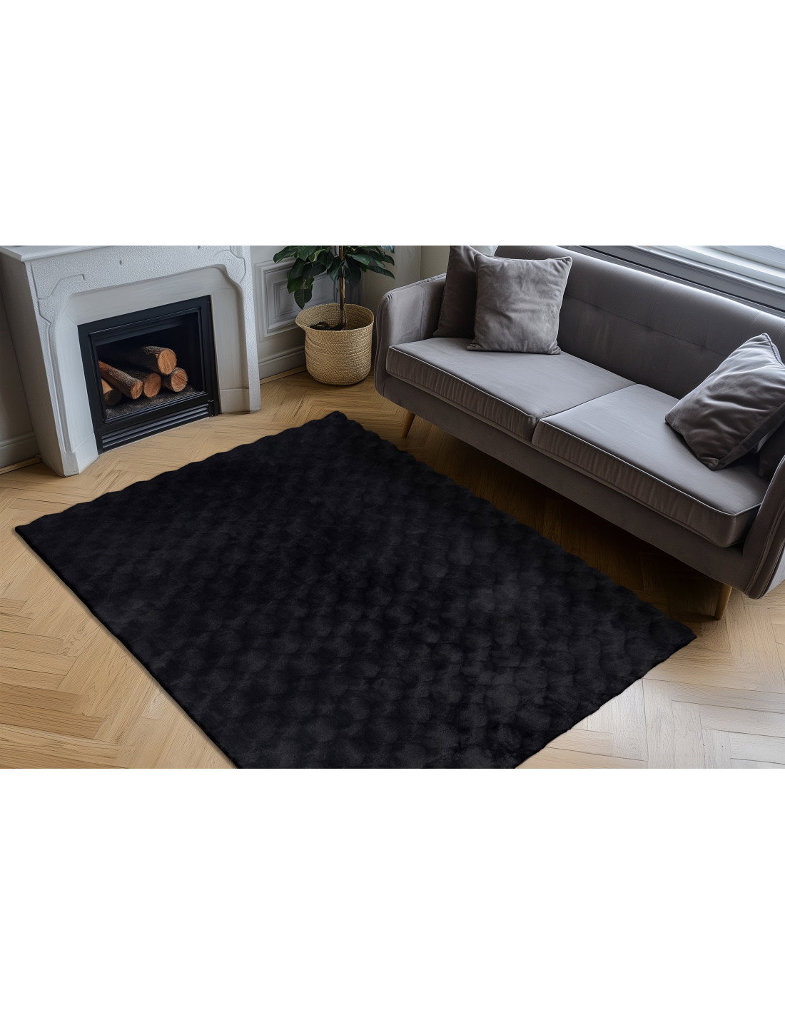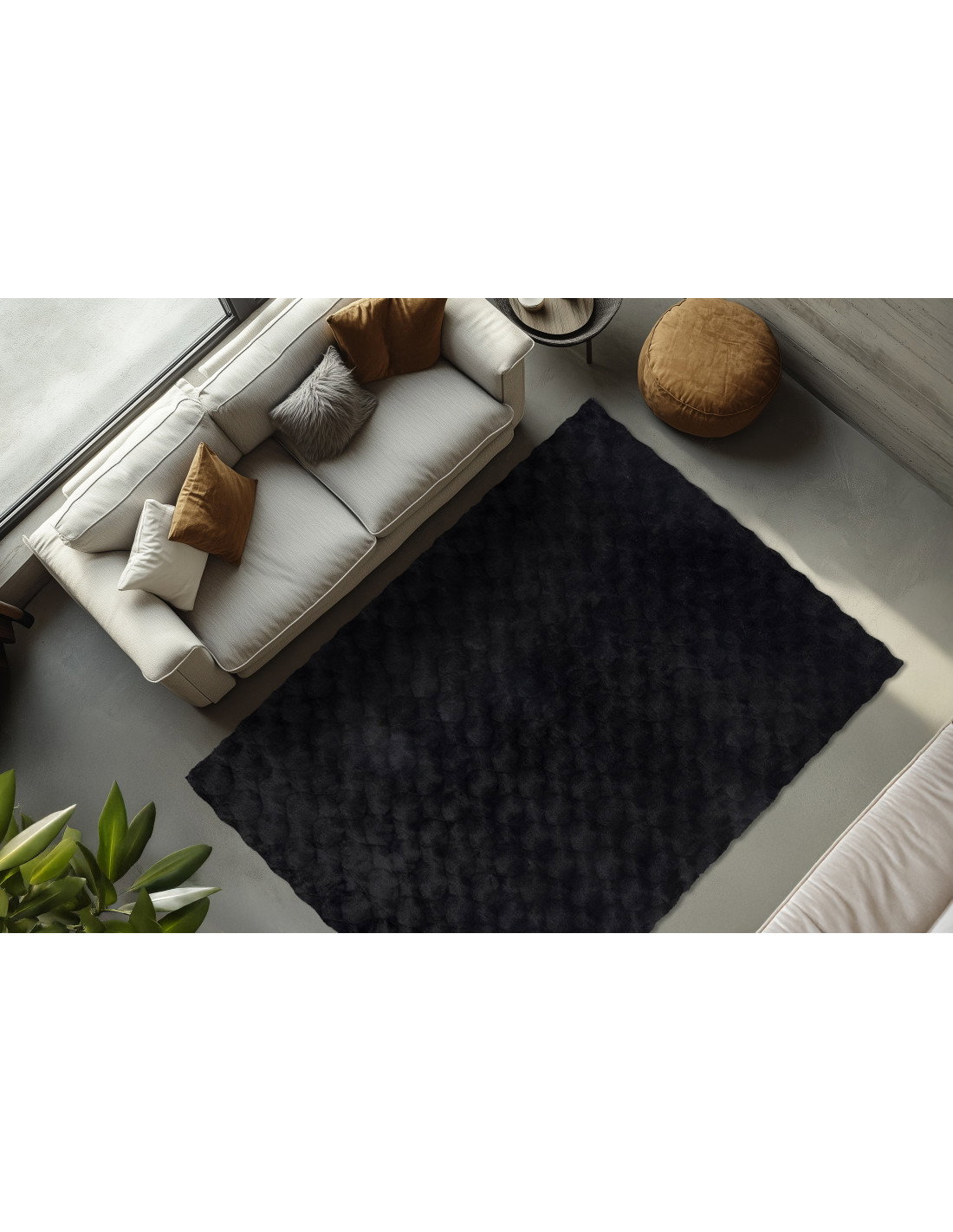 Il colore antracite, una tonalità scura e profonda, dona al tappeto un aspetto elegante e versatile, capace di integrarsi facilmente con diversi stili d’arredo, dal minimalista al moderno più sofisticato. La superficie presenta un motivo a rilievo che ricorda un delicato intreccio di diamanti, ottenuto grazie a una lavorazione meccanica di alta precisione. Questo dettaglio non solo aggiunge un tocco di originalità, ma crea anche un effetto tridimensionale che cattura la luce in modo unico, conferendo movimento e dinamismo al tappeto.
