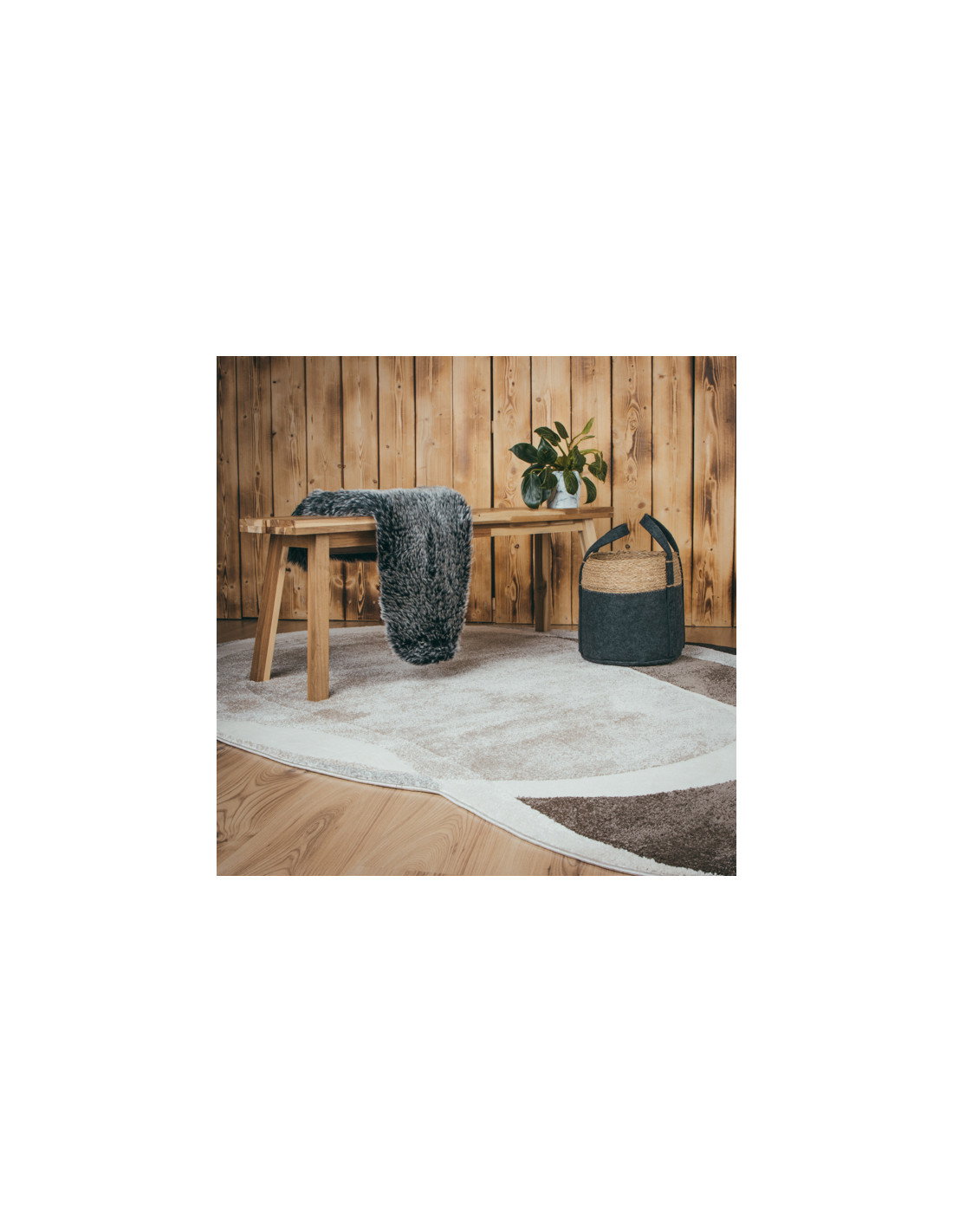 Il motivo geometrico, caratterizzato da curve sovrapposte e sfumate, dona profondità e movimento al tappeto, rendendolo un elemento d’arredo capace di valorizzare qualsiasi tipo di pavimento, dal parquet al gres porcellanato. La scelta cromatica neutra lo rende estremamente versatile, adattandosi facilmente a diversi stili di arredamento, dal minimalista al moderno, fino al più classico rivisitato in chiave contemporanea.
