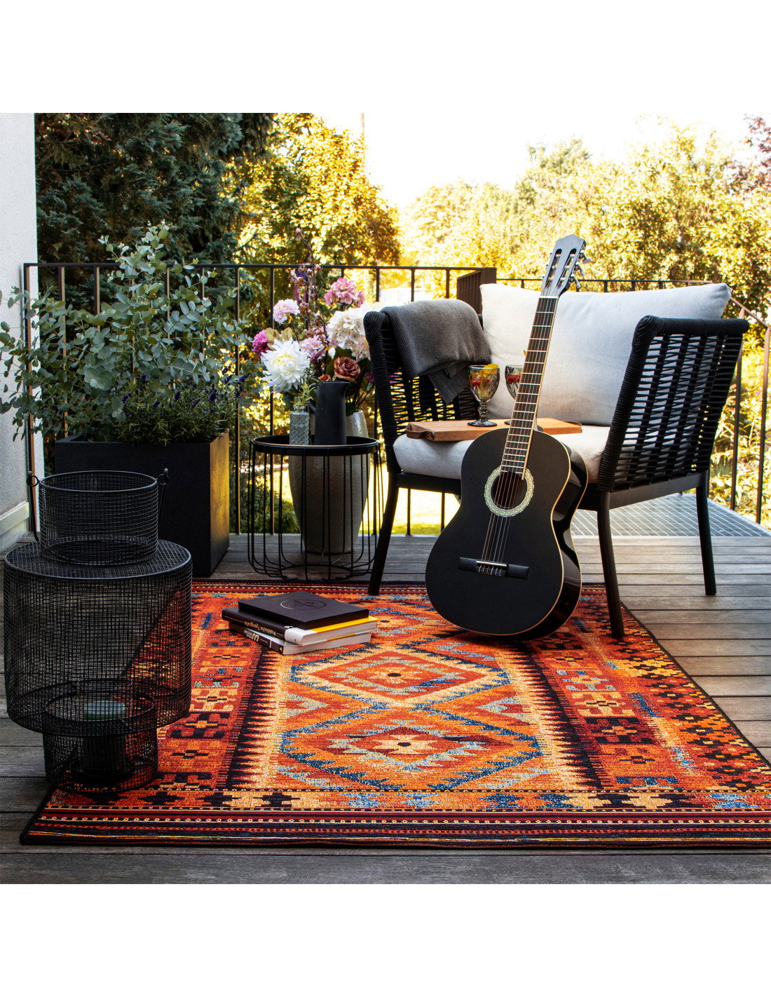 La combinazione di polipropilene e poliestere conferisce al tappeto una texture morbida ma resistente, ideale per un uso quotidiano in ambienti domestici. La lavorazione sintetica permette di mantenere intatti i colori nel tempo, garantendo una lunga durata senza perdere brillantezza. La sua provenienza dall’Egitto aggiunge un valore artigianale, richiamando la tradizione tessile di una delle culture più antiche e raffinate del mondo.