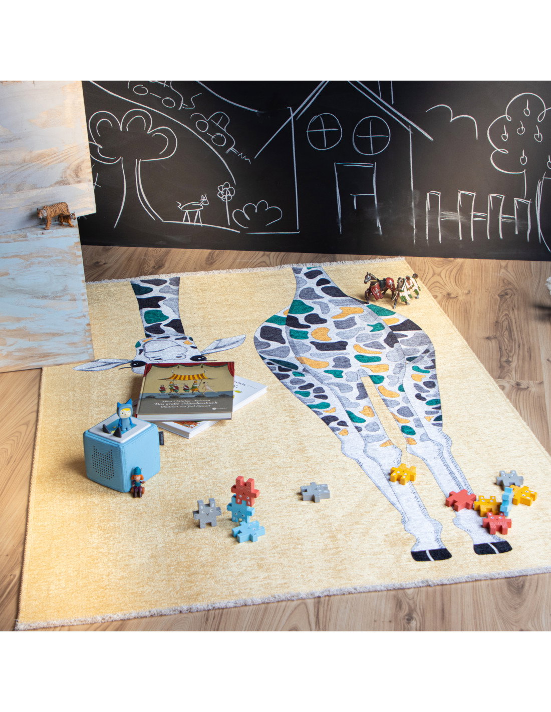 - Design unico e giocoso: la giraffa stilizzata con colori vivaci rende il tappeto un elemento decorativo originale, perfetto per ambienti bambini ma anche per chi ama i tappeti salotto con un tocco di personalità.