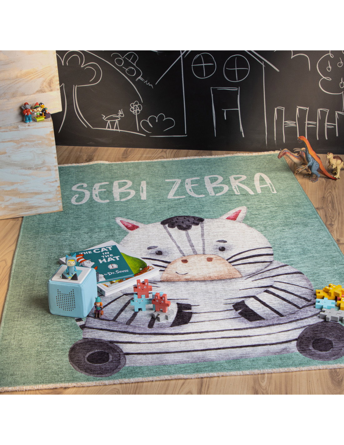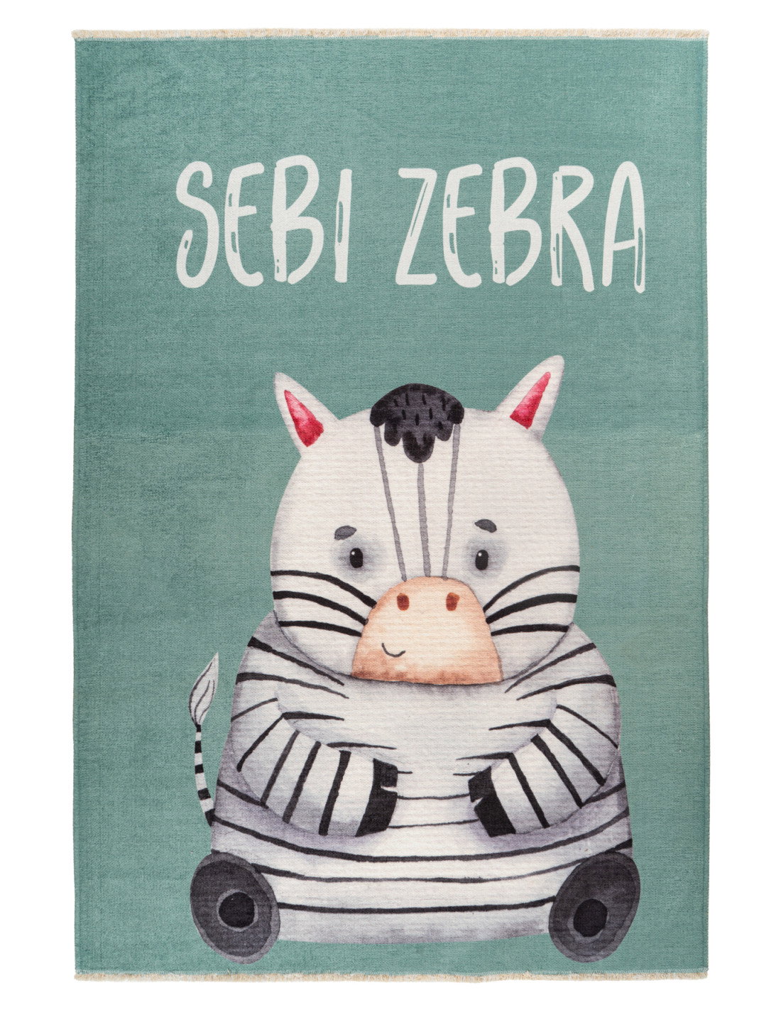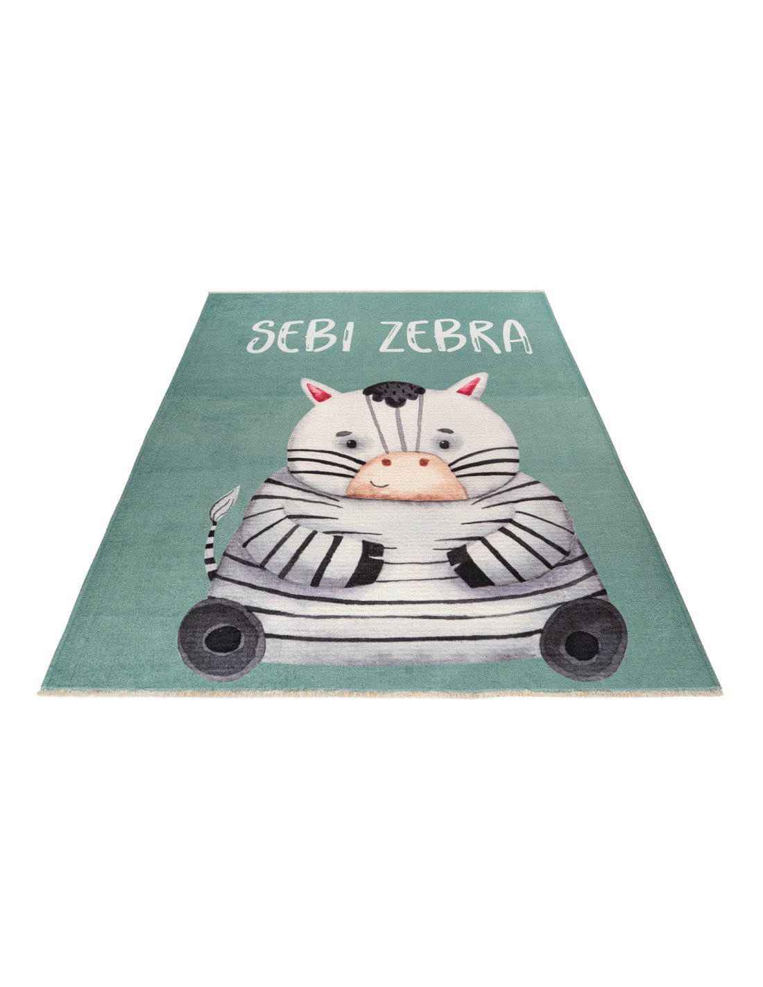 Il tappeto Greta 614 zebra è una scelta perfetta per chi desidera un tocco di dolcezza e originalità negli ambienti dedicati ai più piccoli. Il suo design giocoso e accattivante raffigura una simpatica zebra stilizzata, disegnata con linee morbide e colori tenui che si integrano armoniosamente in qualsiasi stanza per bambini. Lo sfondo verde acqua crea un contrasto delicato con il bianco e nero della zebra, mentre le sfumature di rosa all’interno delle orecchie e il musetto color pesca donano un tocco di calore e simpatia.