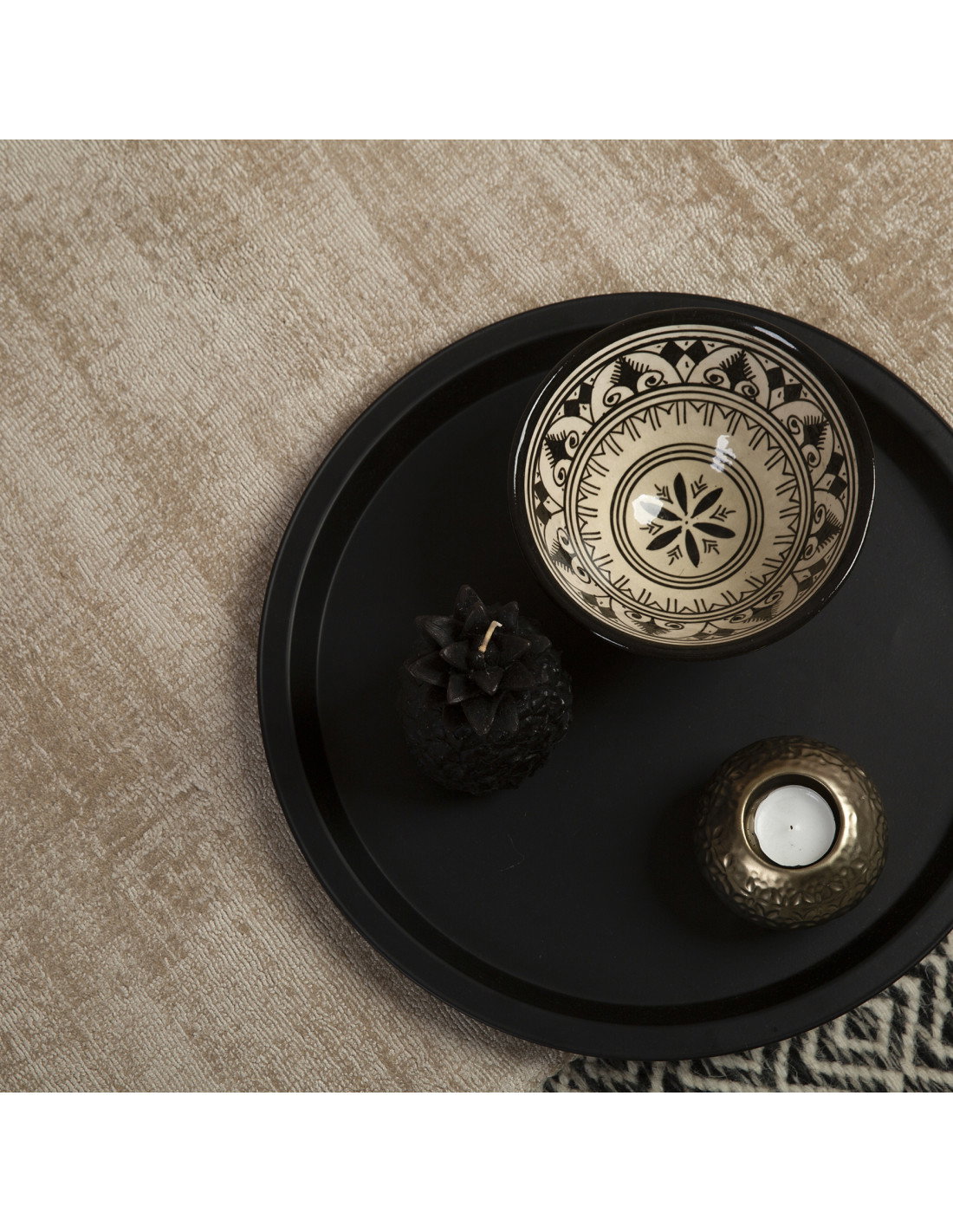 Realizzato interamente a mano in India, questo tappeto è un esempio di artigianalità e cura nei dettagli. La lavorazione tessuta a mano conferisce una texture unica e piacevole al tatto, che si distingue per la sua morbidezza e resistenza. Il materiale naturale, 100% viscosa, dona al tappeto un aspetto leggermente lucido e sofisticato, capace di riflettere la luce in modo delicato e di valorizzare gli spazi con un tocco di eleganza discreta.
