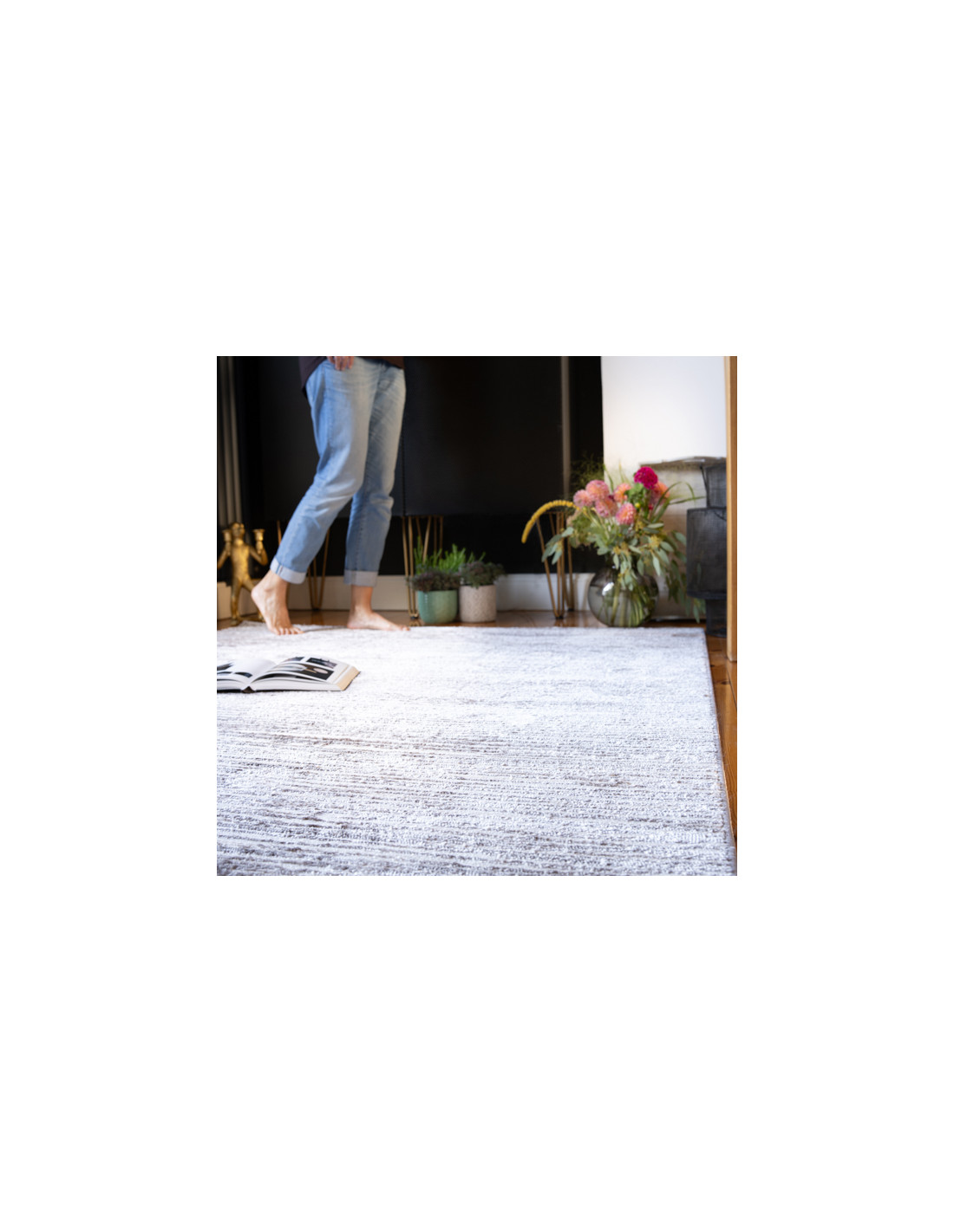Il design di questo tappeto moderno è pensato per chi ama un’estetica sobria ma ricercata, capace di integrarsi con arredi minimalisti o più classici. La fantasia a righe sfumate crea un effetto di profondità e movimento, evitando l’effetto piatto e monotono tipico di molti tappeti unicolore. Questo lo rende un elemento decorativo che non passa inosservato, ma che allo stesso tempo non sovrasta gli altri elementi della stanza.