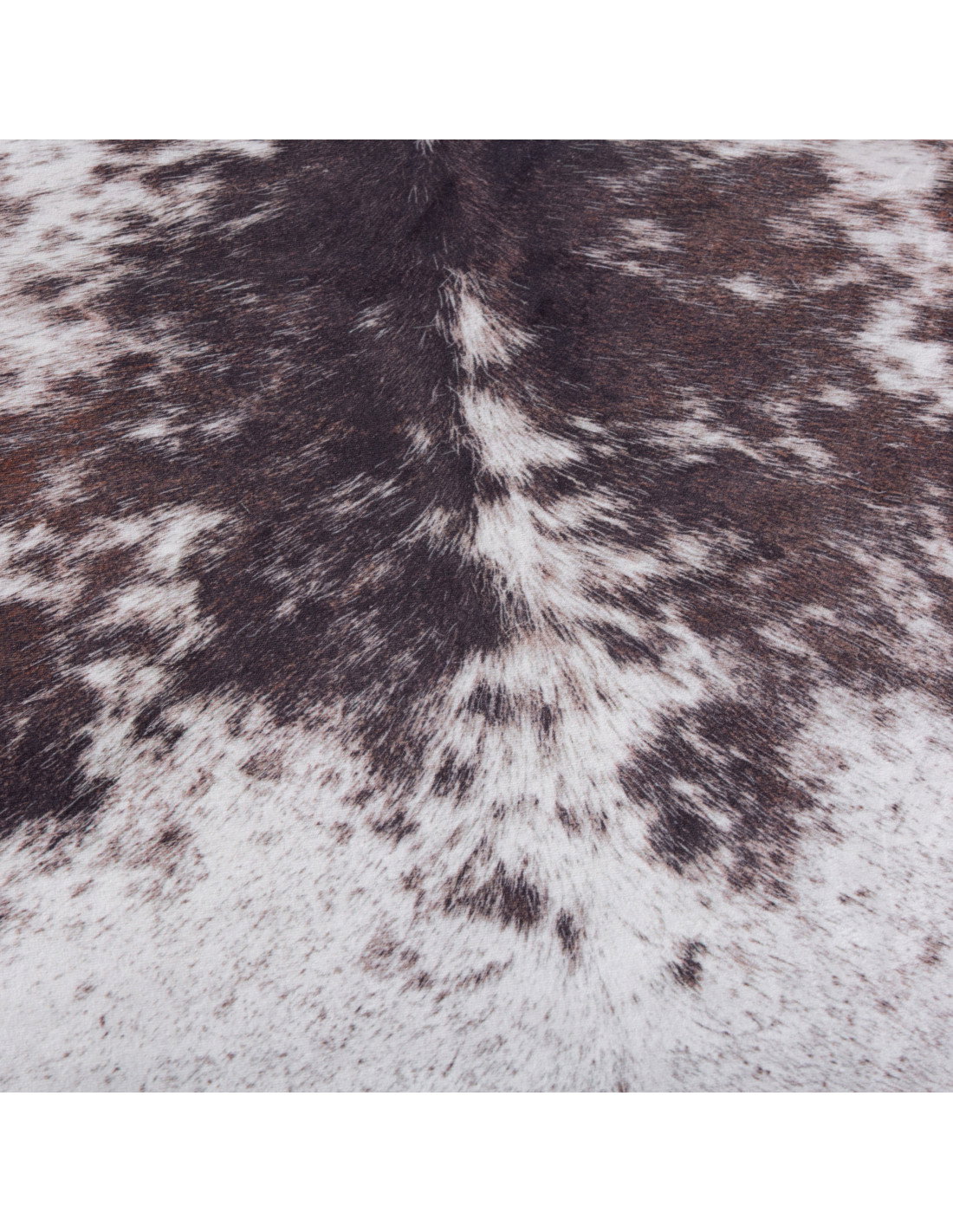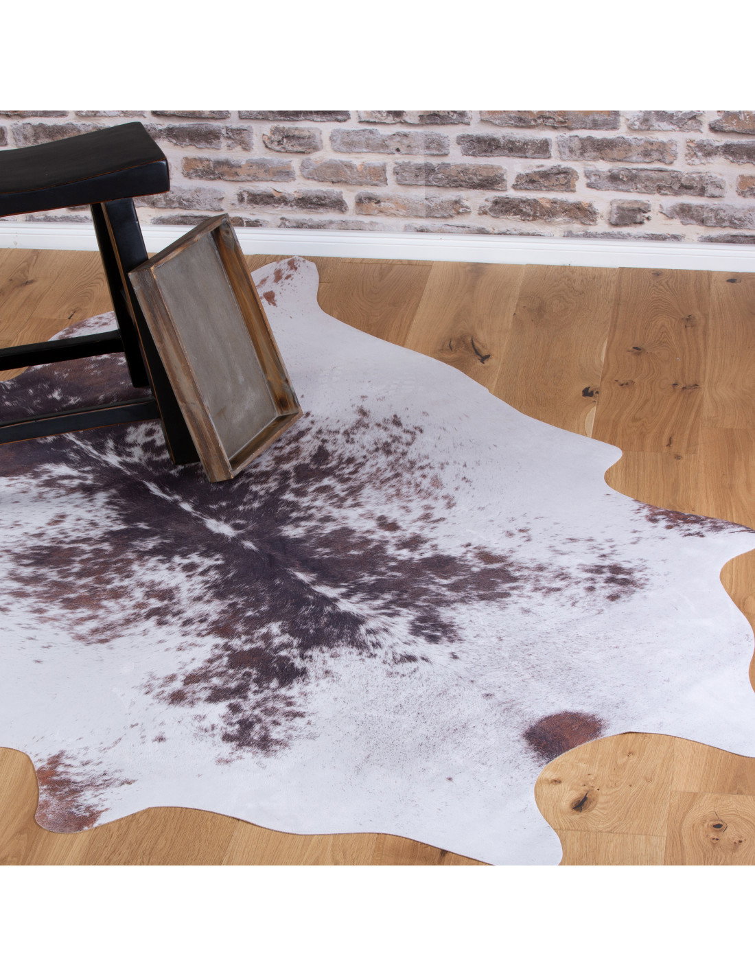 Le dimensioni standard di 155x190 cm lo rendono versatile e adatto a diverse soluzioni d’arredo, mentre la combinazione di colori marrone e bianco si integra facilmente con palette cromatiche neutre o più vivaci. La sua fantasia a macchie è perfetta per chi ama i tappeti moderni con un carattere deciso, ma senza rinunciare a un tocco di naturalezza e calore.