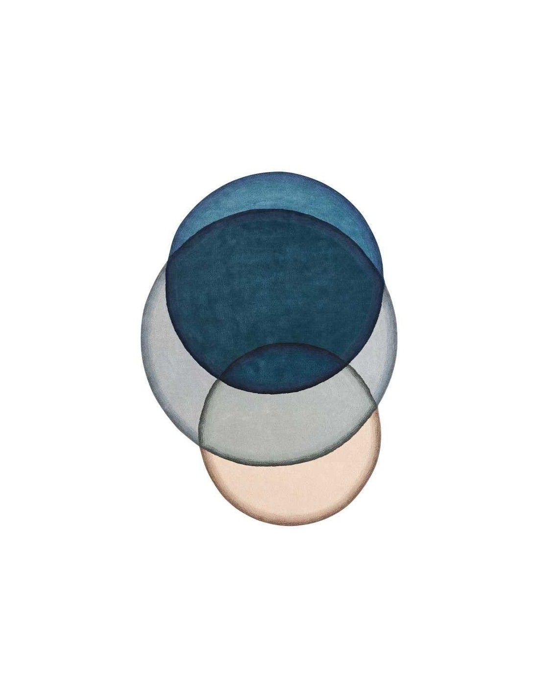 Crystal Blue di Charlotte Lancelot è un tappeto hand-tufted realizzato in 100% lana vergine con retro in cotone. Ha uno spessore di circa 1,1 cm ed è disponibile nella misura standard di 190×260 cm. Il disegno si compone di forme circolari sovrapposte che ricordano le trasparenze del vetro colorato, creando un’illusione ottica di profondità e movimento. I colori dominanti sono il blu intenso e l’ecrù chiaro, sfumati con delicate transizioni per un effetto visivo armonioso e rilassante. Perfetto per ambienti moderni, dona eleganza, personalità e un tocco artistico senza appesantire lo spazio.