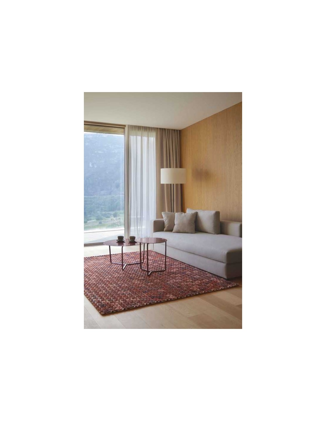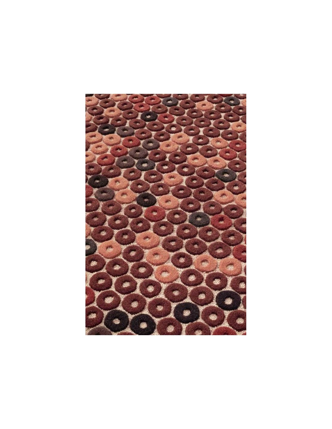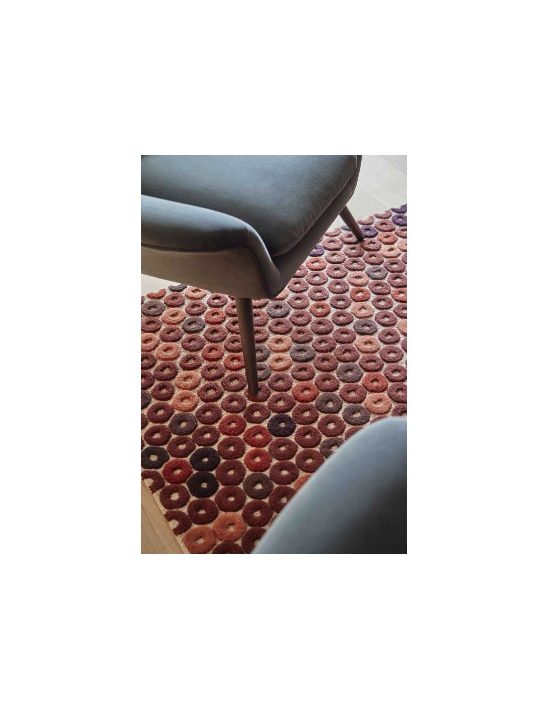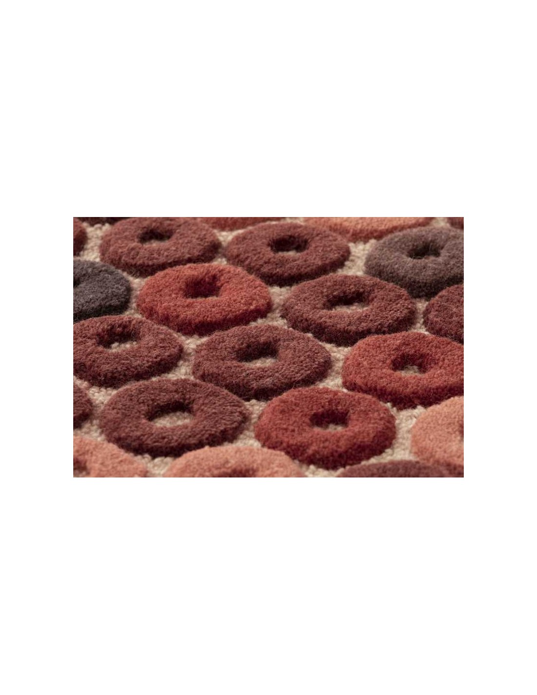 Il tappeto Chimos prende il nome dalla caramella con il buco tanto in voga negli anni Ottanta, conosciuti in America anche come Life Savers. In CHIMOS il protagonista è un'unica figura, il disco, ripetuto in una declinazione cromatica della sua principale colore su uno sfondo contrastante. La linea che definisce ogni disco acquista forza grazie alle variazioni di volume generate attraverso il laborioso lavoro di tufting a mano in lana vergine.![]() |