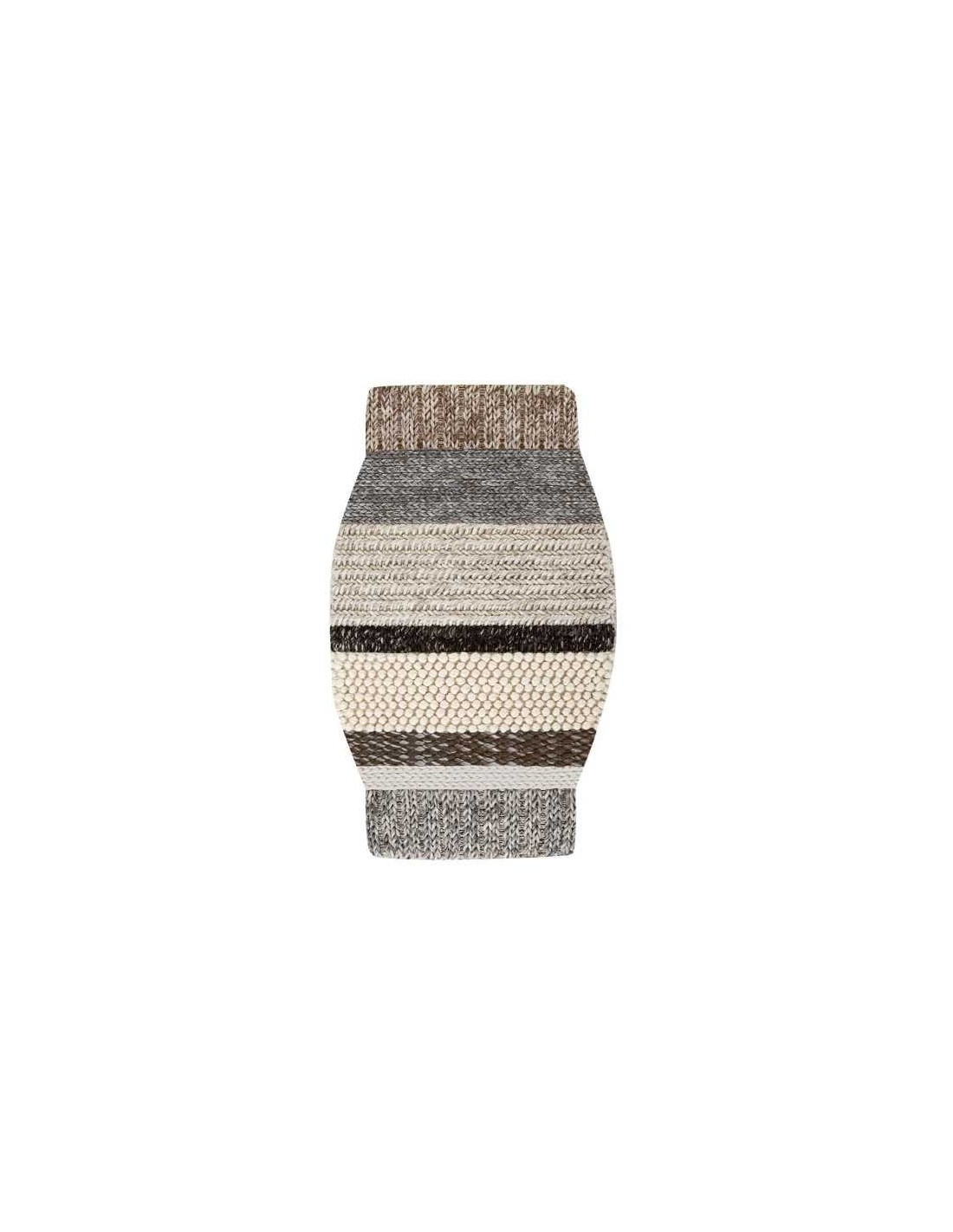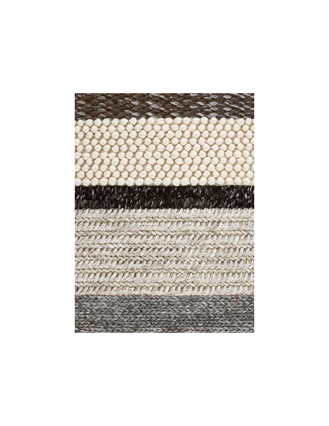 Questo tappeto moderno può essere utilizzato individualmente o in combinazione con altri tappeti mini-dimensioni della serie per comporre un tappeto più grande. Presenta otto texture diverse, elaborato utilizzando diversi colori e tecniche di lana, tutti con un sacco di volume e disposti come strisce. È il modello Mini Naturales Campana MM3N della collezione Mangas Original, nei toni grezzi e terrosi.
