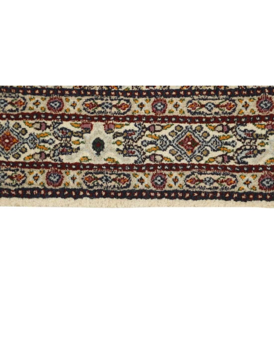 L'unico fascino dei tappeti di Moud ha ispirato gli artigiani in India a ricreare i loro straordinari motivi e la qualità, confermando ulteriormente il loro irresistibile fascino e la loro incomparabile omogeneità. Nel mondo dei tappeti di Moud si trova un tesoro di disegni straordinariamente coerenti, annodati con cura e immediatamente riconoscibili come parte del ricco patrimonio artistico della provincia di Khorasan.