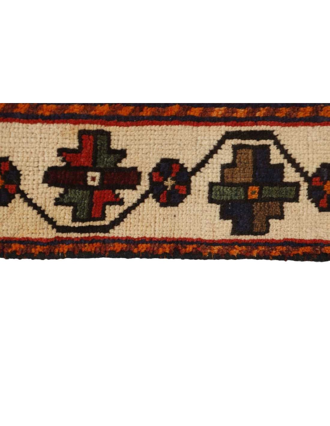 Lana morbida e flessibile, accuratamente selezionata, diventa la base di queste creazioni nomadi. I tessitori utilizzano abilmente lana più scura, talvolta integrata con pelo di capra, sia per la trama che per l'ordito, garantendo la resistenza e la longevità di ogni tappeto. I motivi geometrici, evocativi dei tradizionali motivi Kashghai, dominano i disegni, emanando un senso di eleganza rustica. Tra questi motivi, è possibile scoprire la presenza di piccoli uccelli e animali giocosi, che aggiungono un tocco di vivacità e fascino ai tappeti.