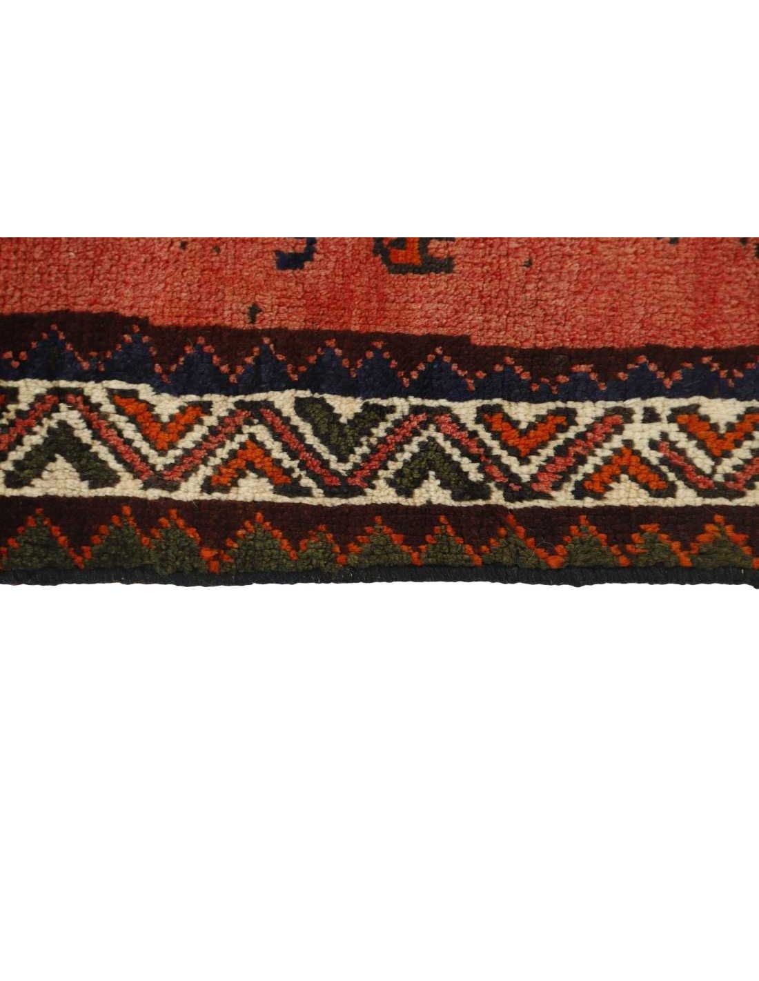 Lana morbida e flessibile, accuratamente selezionata, diventa la base di queste creazioni nomadi. I tessitori utilizzano abilmente lana più scura, talvolta integrata con pelo di capra, sia per la trama che per l'ordito, garantendo la resistenza e la longevità di ogni tappeto. I motivi geometrici, evocativi dei tradizionali motivi Kashghai, dominano i disegni, emanando un senso di eleganza rustica. Tra questi motivi, è possibile scoprire la presenza di piccoli uccelli e animali giocosi, che aggiungono un tocco di vivacità e fascino ai tappeti.