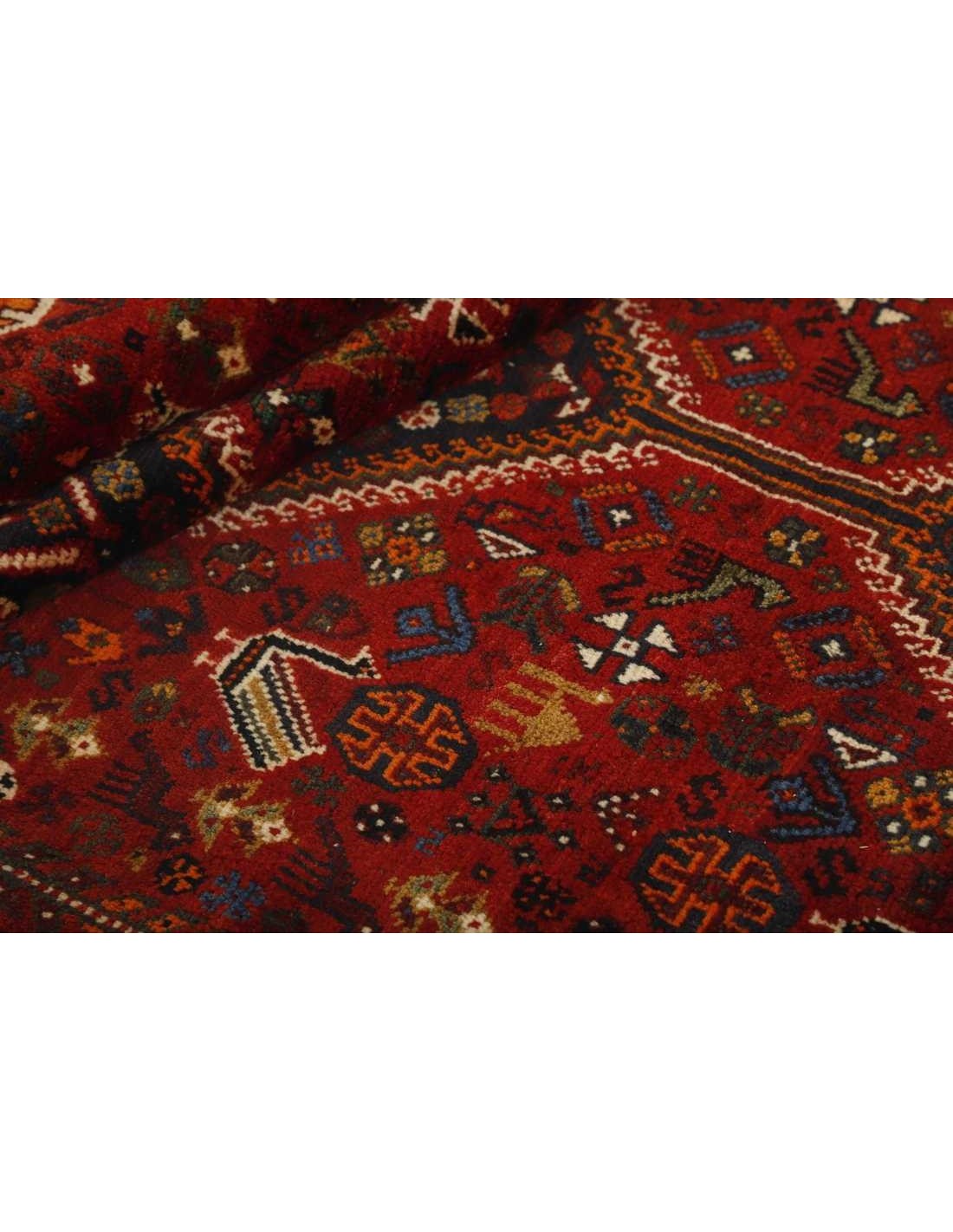 Lana morbida e flessibile, accuratamente selezionata, diventa la base di queste creazioni nomadi. I tessitori utilizzano abilmente lana più scura, talvolta integrata con pelo di capra, sia per la trama che per l'ordito, garantendo la resistenza e la longevità di ogni tappeto. I motivi geometrici, evocativi dei tradizionali motivi Kashghai, dominano i disegni, emanando un senso di eleganza rustica. Tra questi motivi, è possibile scoprire la presenza di piccoli uccelli e animali giocosi, che aggiungono un tocco di vivacità e fascino ai tappeti.